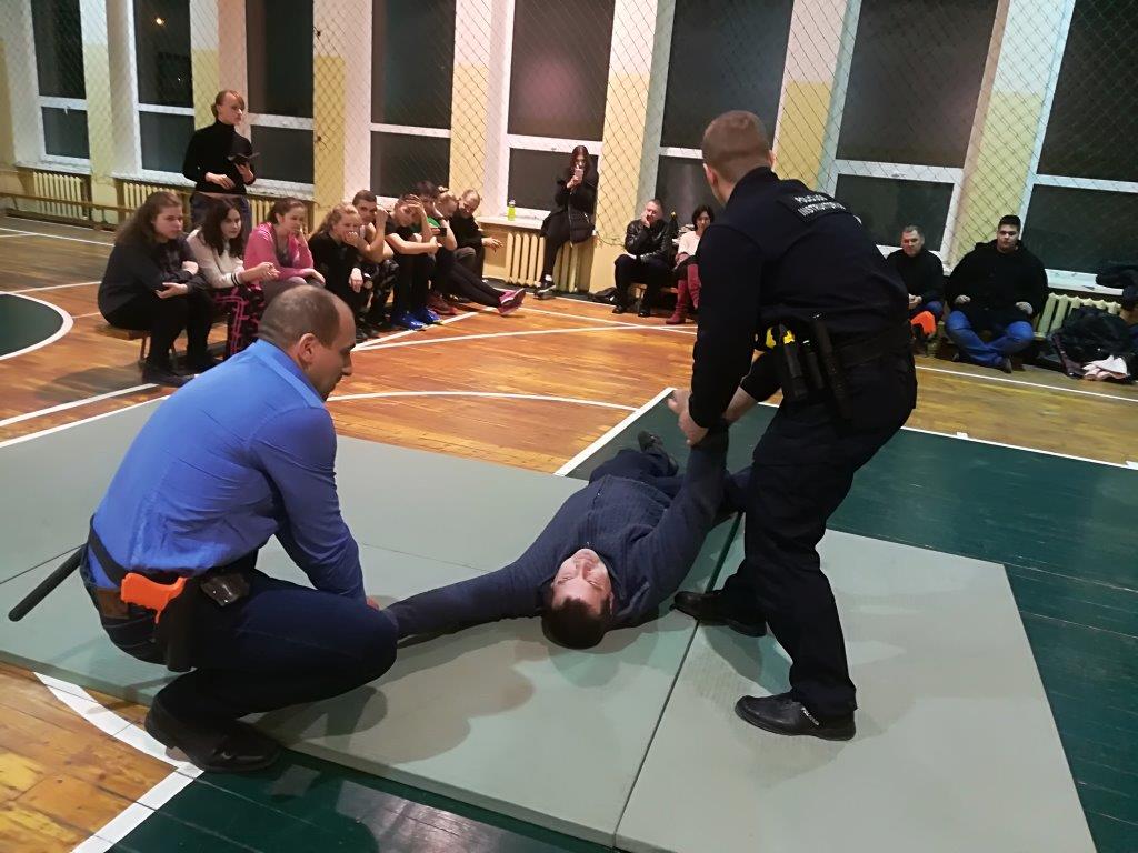 Teorinę dalį lydėjo praktinės užduotys. Jas atlikdami policijos rėmėjai turėjo uždėti antrankius, sulaikyti puolantį asmenį, paguldyti ir pakelti jį nuo žemės. Buvo rodoma ir aiškinama, aiškinama, kaip kiekvienu konkrečiu atveju reikėtų pasielgti.