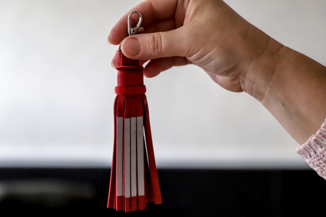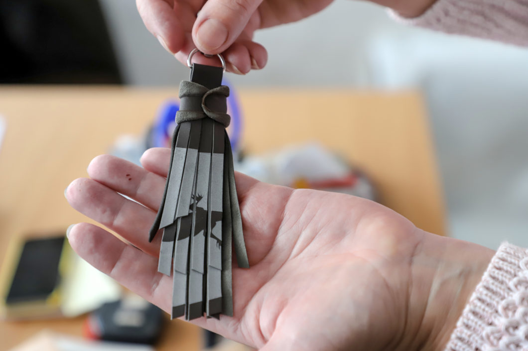 R. Galeckienės iš natūralios odos kurti atšvaitai ne tik apsaugo, bet ir yra stilinga įvaizdžio detalė.