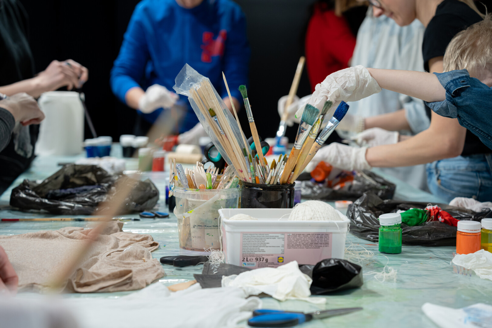 Madingame susitikime su tekstilės dizaino studijos kuratorėmis Inga ir Lina perdarykime senus marškinėlius, naudojant antrines žaliavas: audinių atraižas, aksesuarus (sagas, bižuteriją ir pan.).