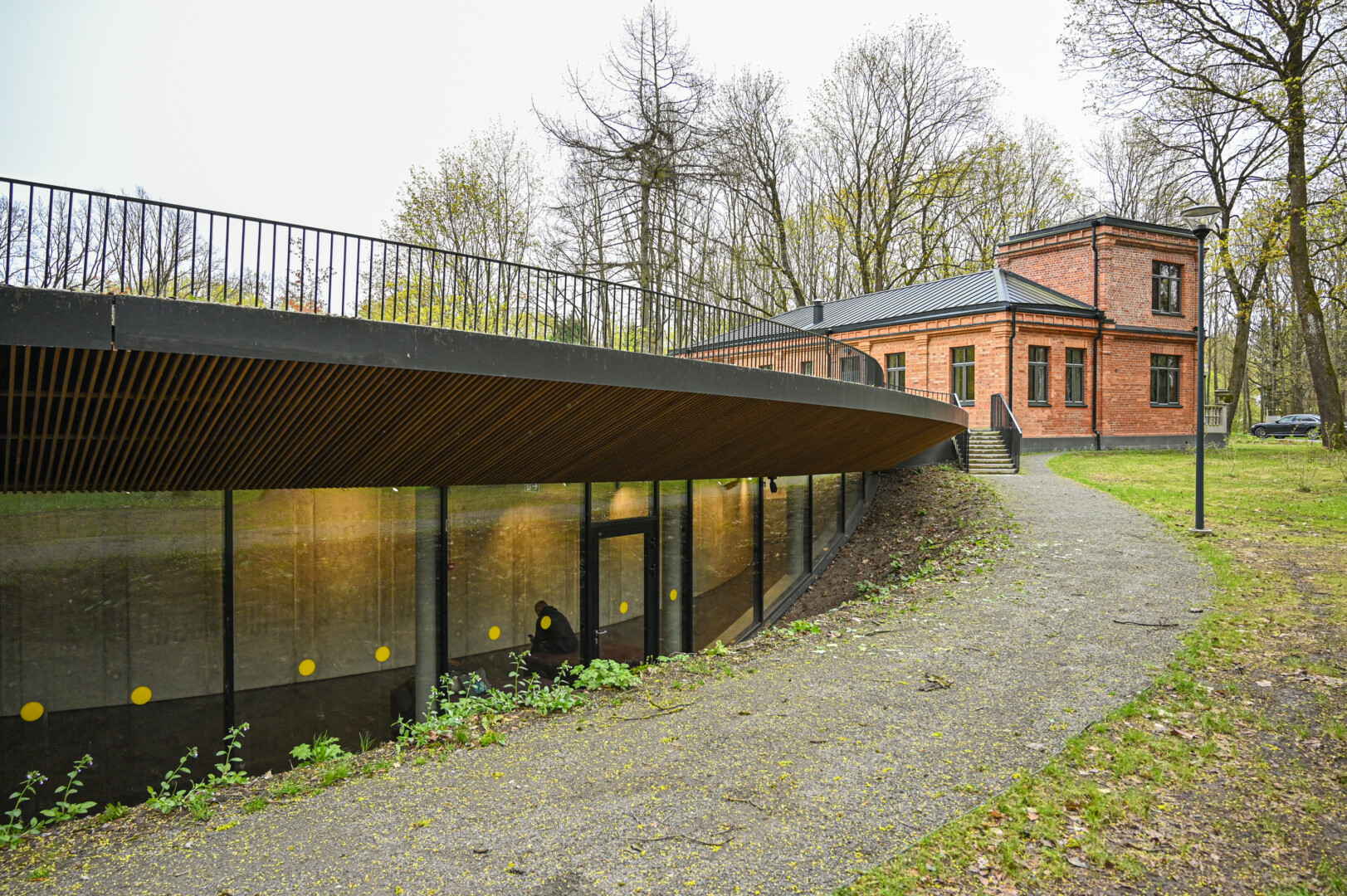 Įgyvendinant projektą šalia istorinio raudonų plytų pastato suprojektuotas ir pastatytas unikalus iš po žemės iškylantis maždaug 380 kv. m priestatas su stiklinėmis vitrinomis, tarsi ištrinančiomis ribas tarp vidaus erdvių ir parko.