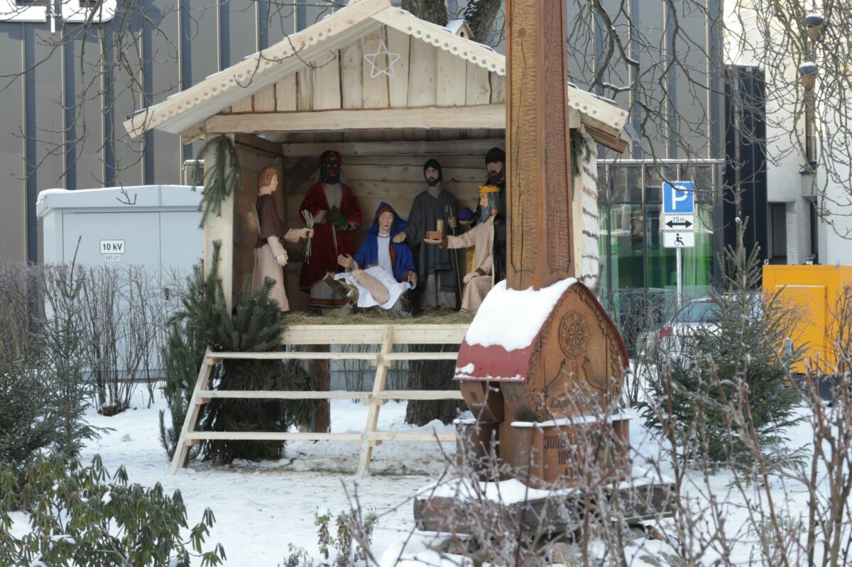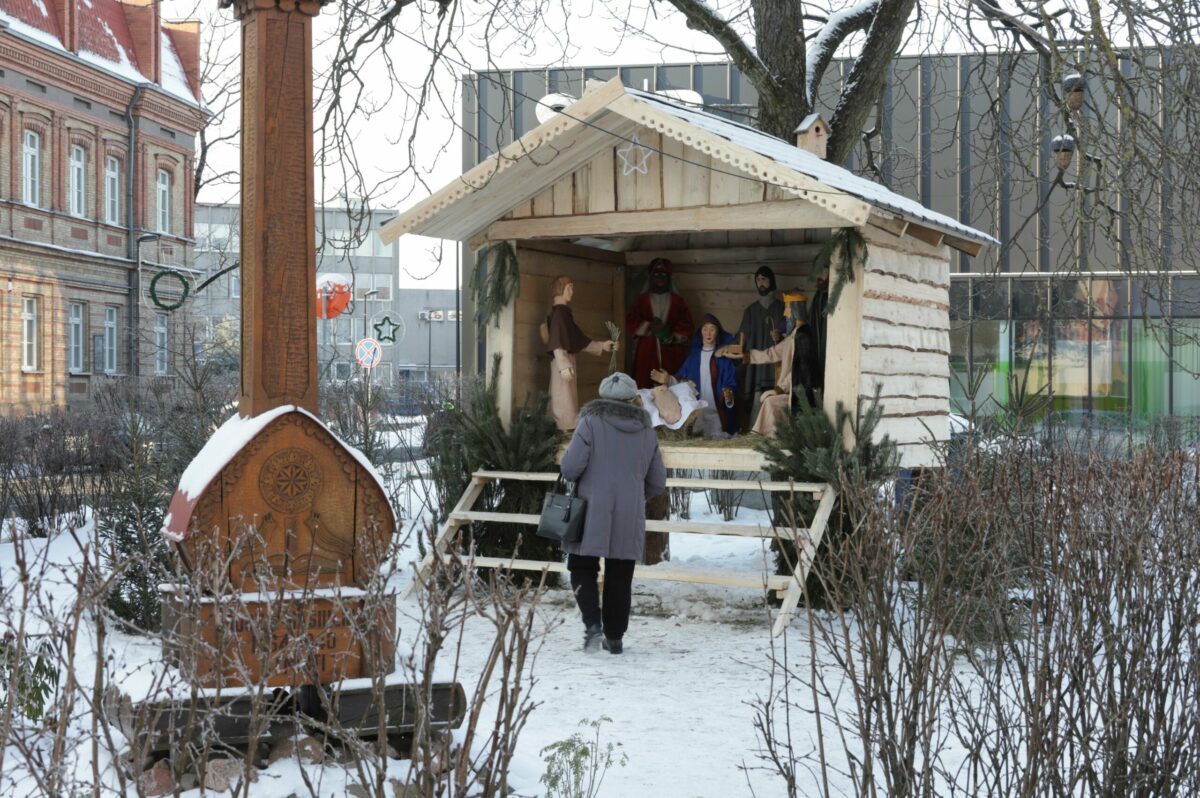 Pirmoji Kalėdų prakartėlė Panevėžyje šįmet įrengta ne kurioje nors miesto bažnyčioje, kaip būdavo įprasta, o Vasario 16–osios gatvėje, daugiau nei šimtmetį skaičiuojančio Juozo Masiulio knygyno kieme.