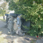 Iš „Renault Espace“ automobilio beliko tik metalo laužo krūva, automobilio vairuotoja greitosios pagalbos automobiliu skubiai išgabenta į ligoninę.