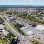 Trijų hektarų teritoriją užimsiantis naujasis prekybos miestelis suprojektuotas viduryje tarp šių dviejų pastatų.