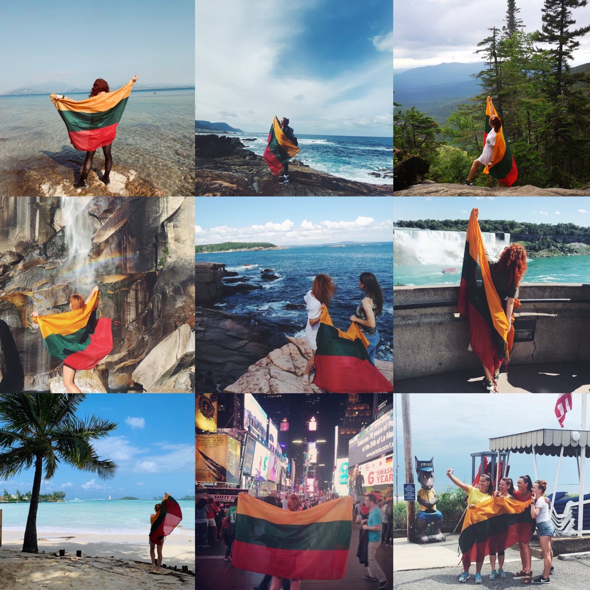Mergina turi tradiciją svečioje šalyje nusifotografuoti kokioje nors įspūdingoje vietoje apsigaubusi trispalve.