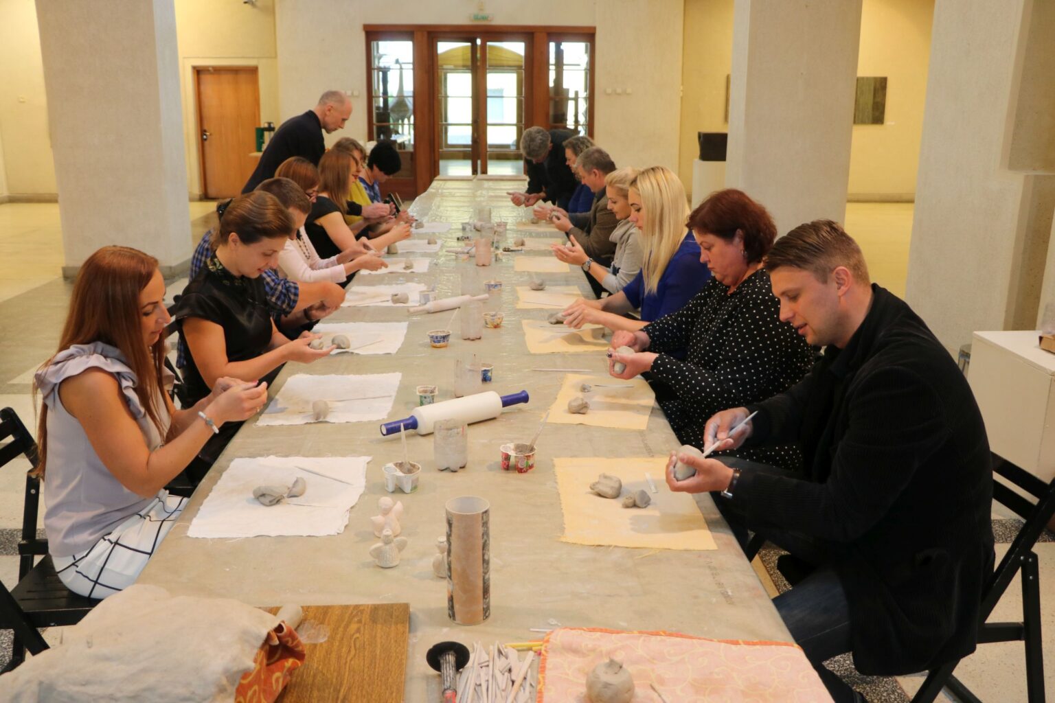 Po oficialiosios dalies pareigūnai buvo kviečiami į edukacinę programą, kurioje menininkai keramikai supažindino su šamoto kūryba ir pakvietė nulipdyti savo angelą – talismaną. Besidžiaugdami savo sukurtais darbais – gražia angelų kolekcija, dalyviai ragavo šventinį tortą, o po to klausėsi Dariaus Liutkevičiaus atliekamų dainų ir patys linksmai traukė visiems gerai žinomas melodijas.