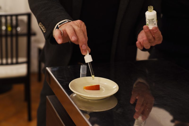 Į itališką vakarą susirinkusius svečius J. Jurkevičienė vaišino gurmaniškais patiekalais, kurių pagrindinis ingredientas buvo alyvuogių aliejus. Jurkevičių, kaip ir italų, virtuvė be šio produkto neįsivaizduojama. P. Jurkevičius yra tikras alyvuogių aliejaus ekspertas. Šiam produktai jis paskyręs ištisą knygą. Vyras į A. Smetonos šeimos rezidenciją susirinkusiems svečiams pasakojo apie šio Italijos virtuvės karaliaus naudą, mokė atskirti jų skonius.