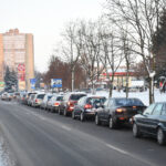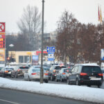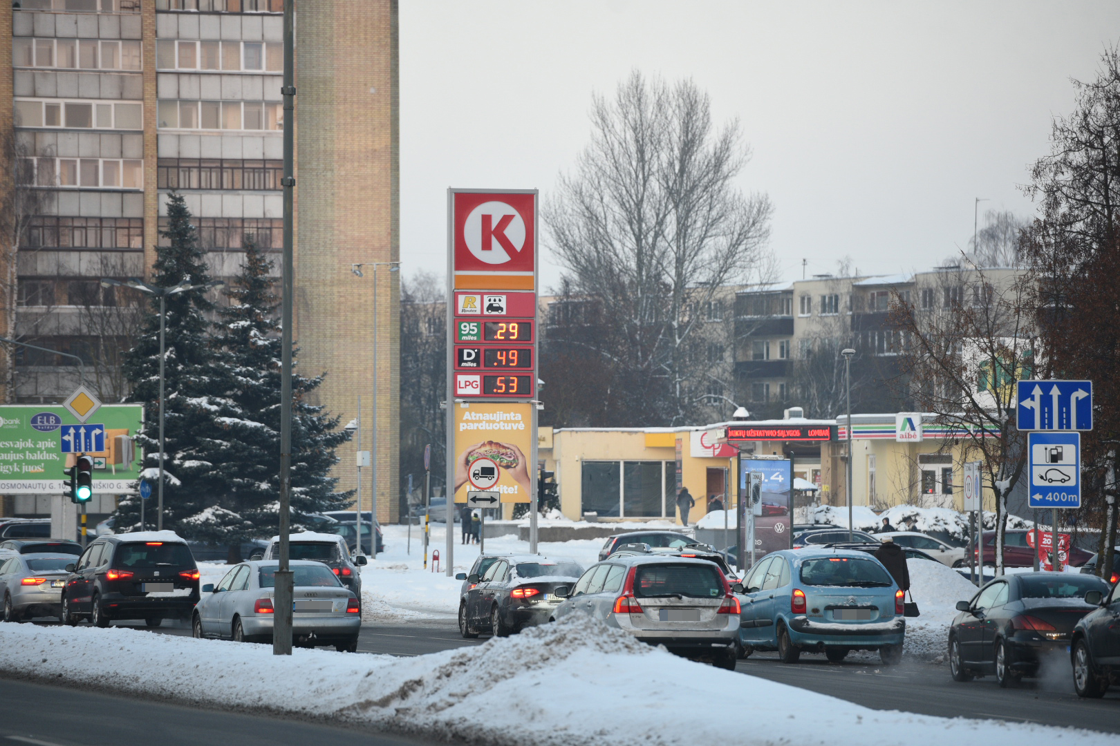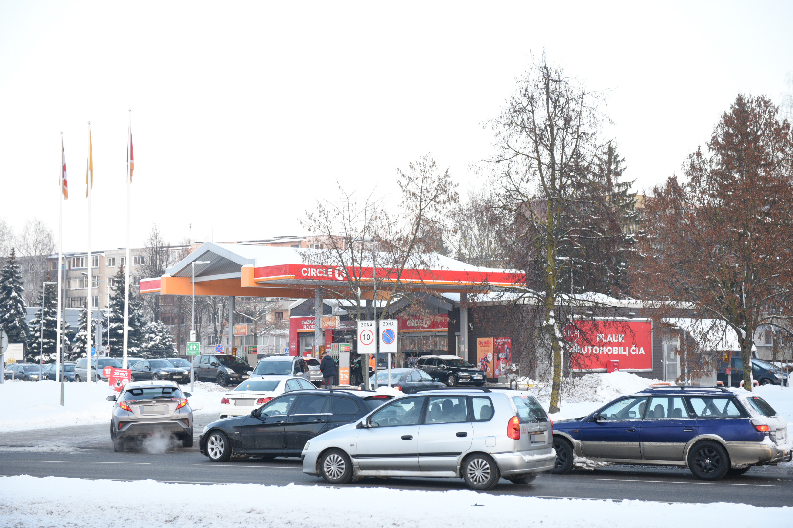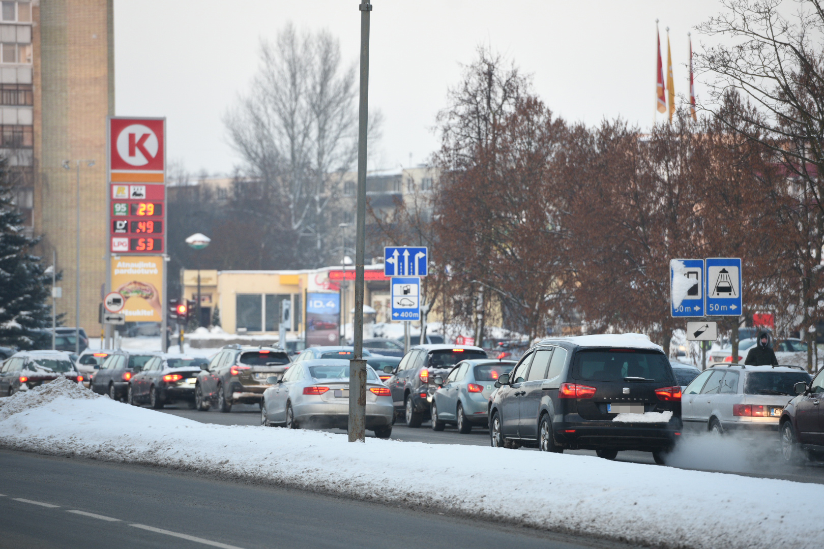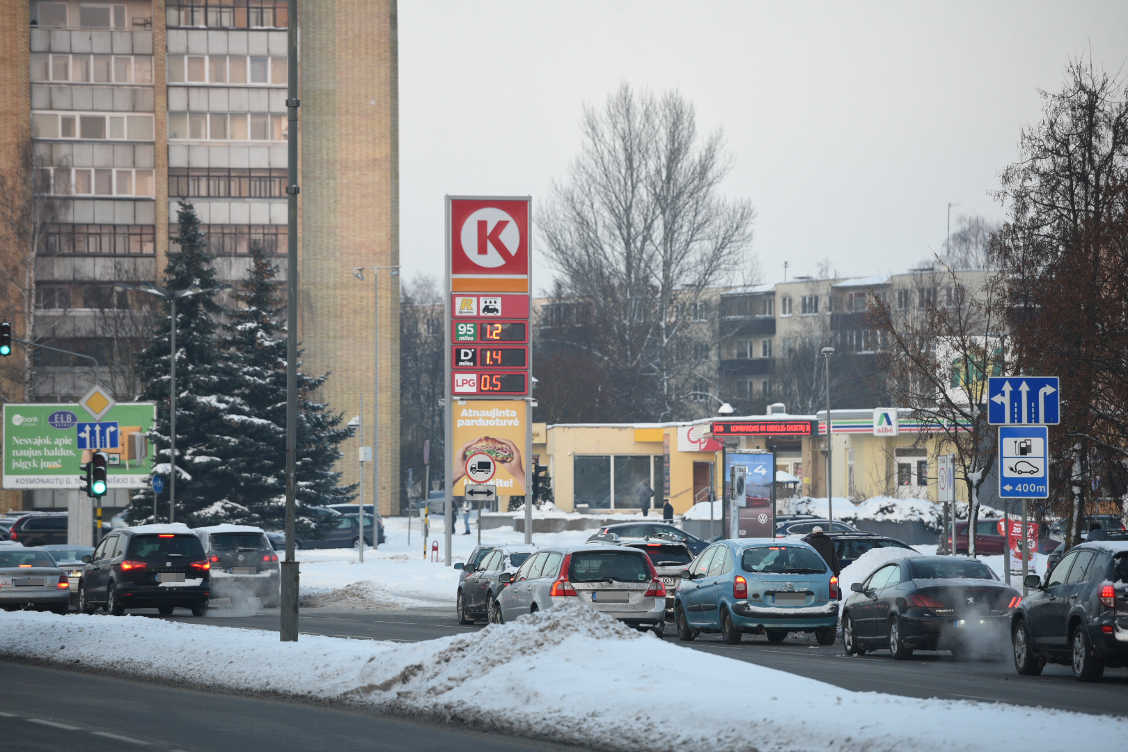 Panevėžyje ketvirtadienio popietę gatvėse nusidriekė kolonos automobilių, laukiančių eilės įsipilti pigesnių degalų.