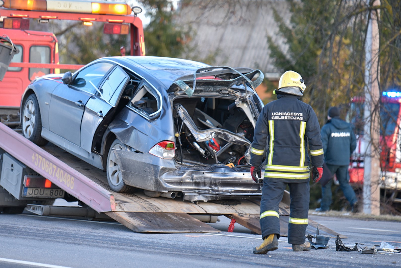 Į nelaimės vietą išsiųsti ugniagesių-gelbėtojų, policijos, greitosios medikų ekipažai.