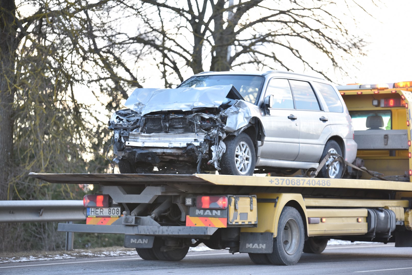 Dėl avarijos kurį laiką užtvertas kelias.