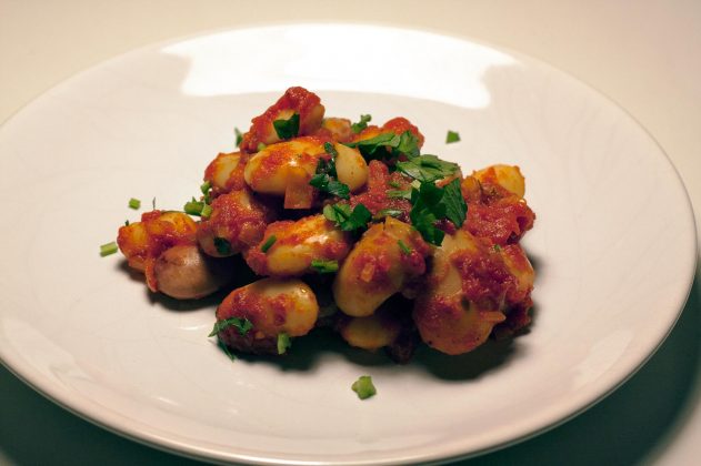 Keptos didžiosios pupelės pomidorų padaže – klasikinis graikiškas patiekalas. Gigantiškąsias graikų pupeles sėkmingai galima keisti karališkosiomis ar stambiomis margaspalvėmis. Geriau naudoti džiovintas pupeles, bet skubant tiks ir konservuotos.