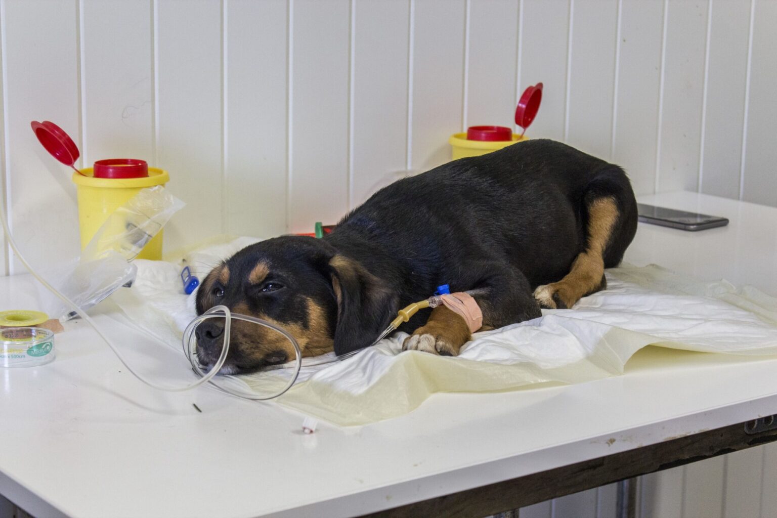 Veterinaras, apžiūrėjęs sužalotą šunelį, nustatė, kad jis patyrė stiprius sumušimus, bet gyvybei pavojingų sužalojimų pavyko išvengti. Kaip sako Gyvūnų prieglaudos vadovė Rūta Liberienė, keturkojis tikras laimės kūdikis. Po lašinių ir vaistų injekcijų šuo po truputį atsigauna.