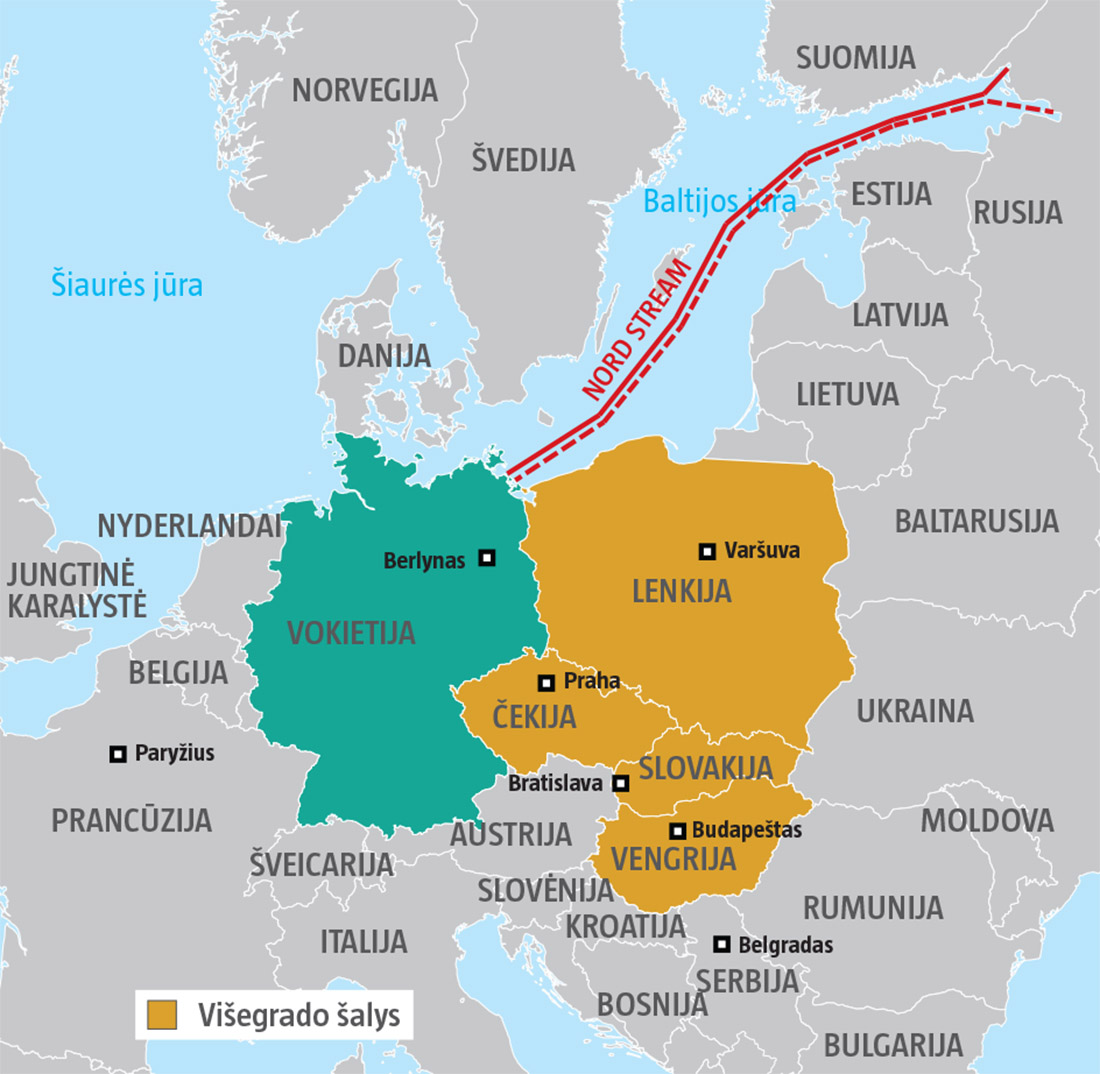 Vengrijos ministras pirmininkas, nacionalistas Viktoras Orbánas (nuotraukoje su A. Merkel), palaimino mintį Budapešto centre pastatyti „memorialą vokiečių invazijos aukoms“. Kartais pagalius sau kaišioja pats Berlynas. Gegužės 4-ąją prasidėjo dujotiekio „Nord Stream 2“ statybos. Aplenkęs Lenkiją, jis sujungs Rusiją ir Vokietiją, žadindamas istorines baimes pakliūti tarp dviejų galingų valstybių.