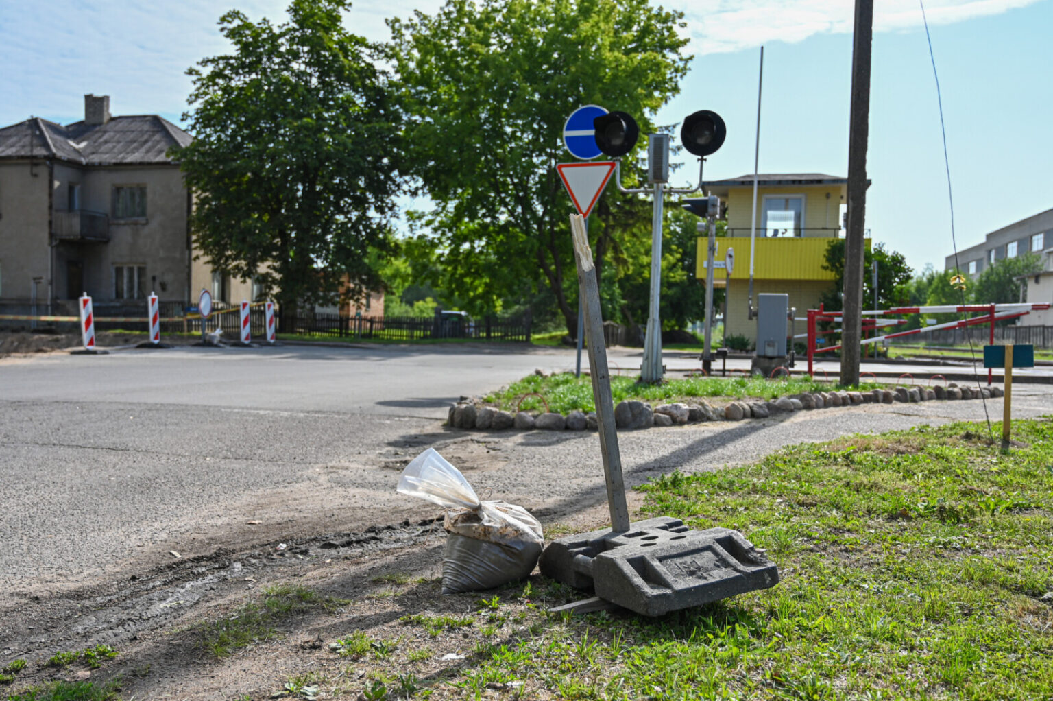 Laikinojo ženklo, draudžiančio iš Geležinkelio g. išvažiuoti į Smėlynės g., nebuvo dar ir antradienį. Jį tepriminė nulaužtas pagalys ir šalia stovintis smėlio maišas, turėjęs prilaikyti. Tą pačią dieną kelininkai pastatė naują.