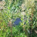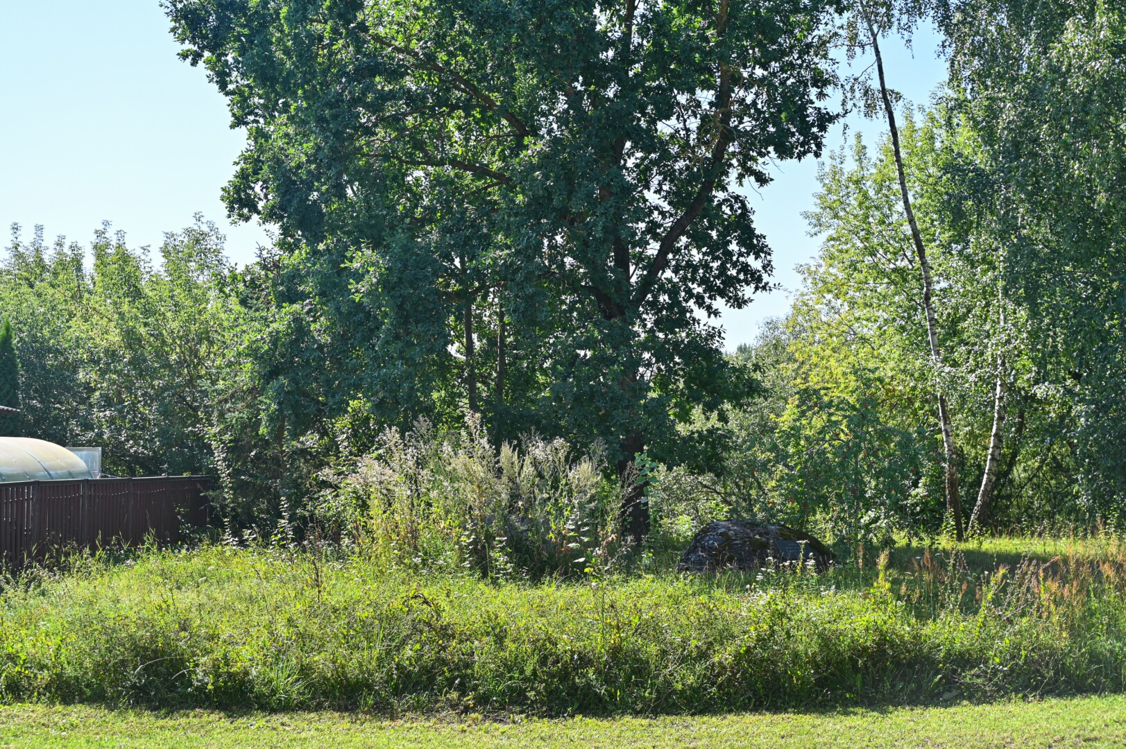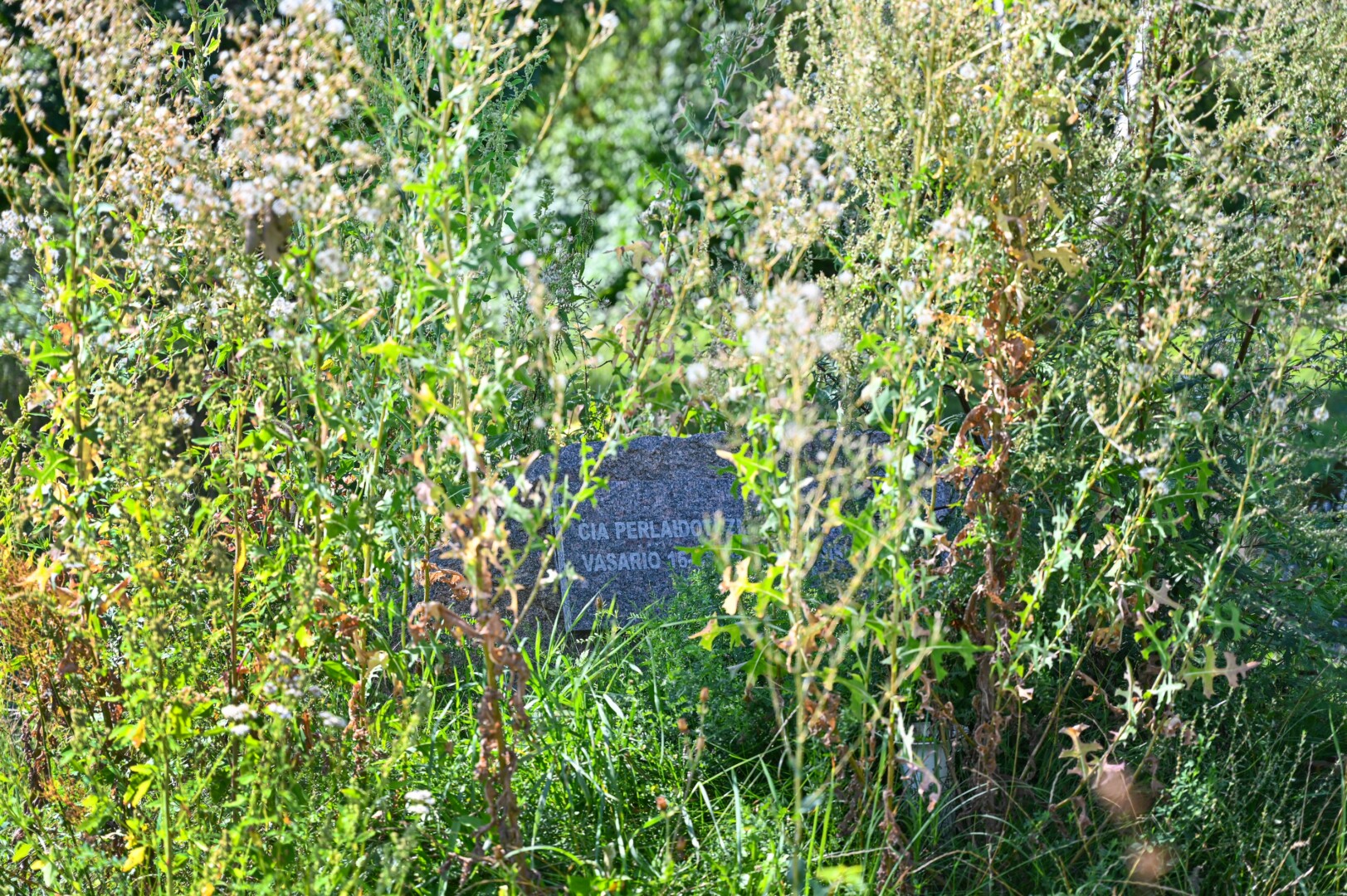 Apaugusios abi kapavietės,jau ir šermukšnio tuoj nebesimatys. Pastato savininkų savininkų aplinka irgi apaugusi jau sėklas sėjančiomis žolėmis.
