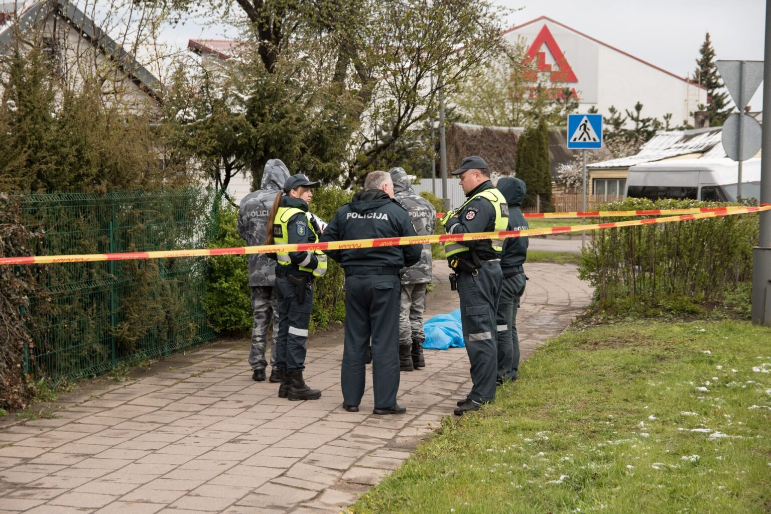 Čia užsitvėrę „Stop“ juosta budėjo greitosios medicininės pagalbos medikai ir policijos pareigūnai. Specialiosios tarnybos gavo pranešimą, kad ant šaligatvio pastebėta gulinti moteris. Atvykę gelbėtojai jai jau niekuo padėti nebegalėjo – konstatuota moters mirtis.