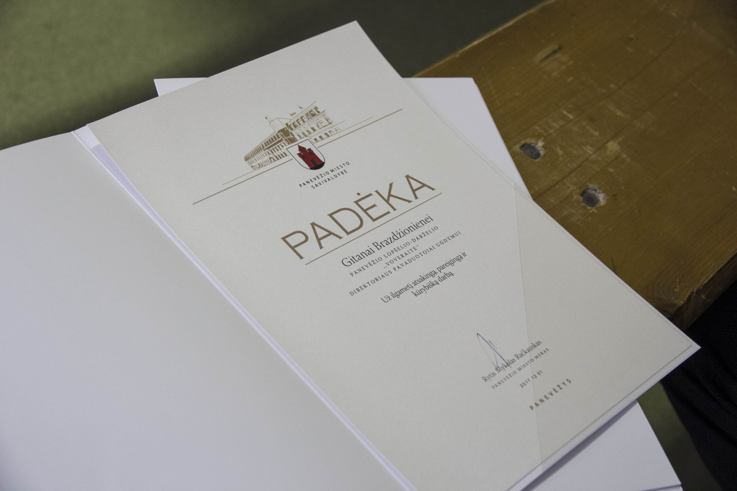 R. Račkauskas įteikė padėkos raštus už ilgametį atsakingą, pareigingą ir kūrybišką darbą lopšelio-darželio darbuotojoms.