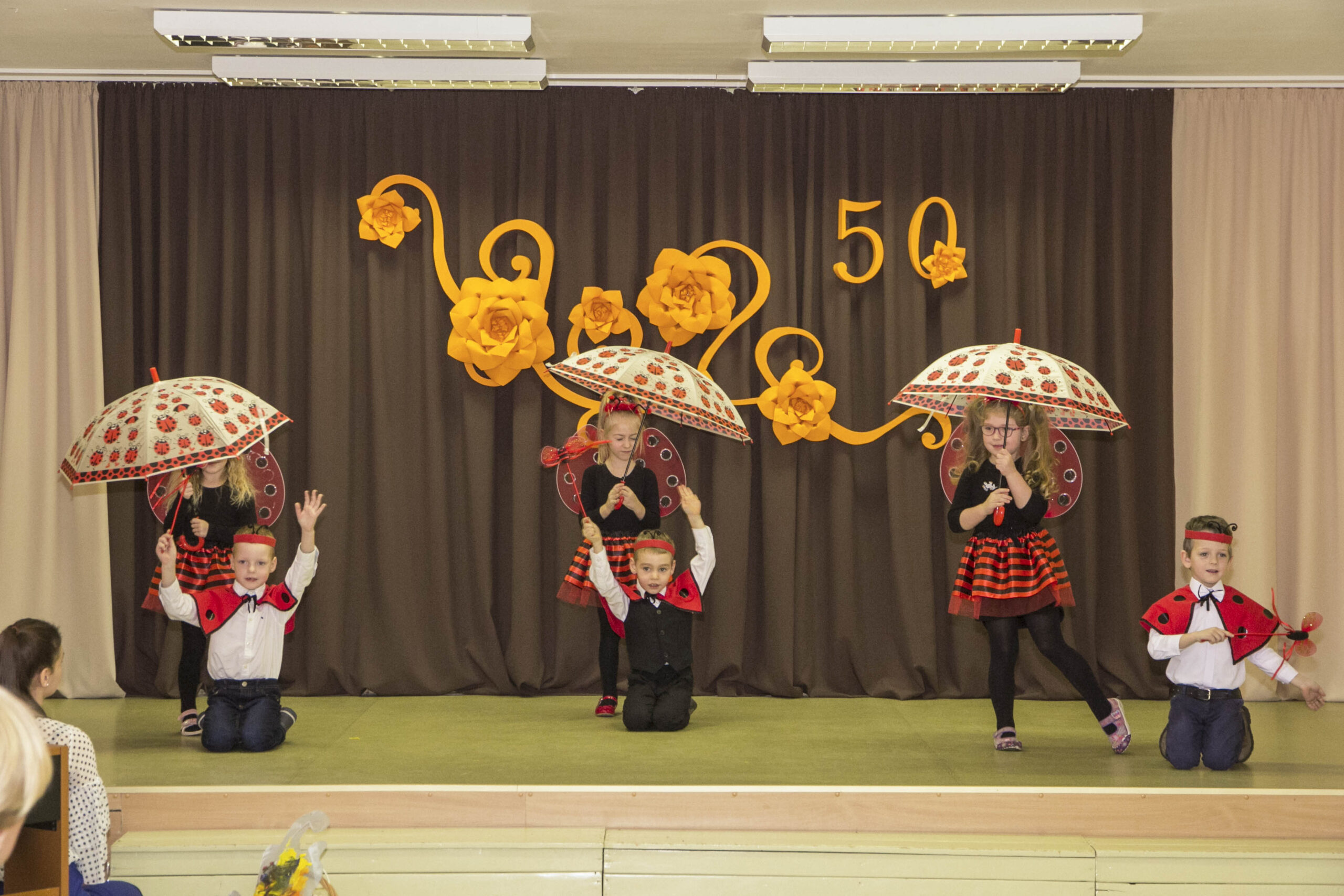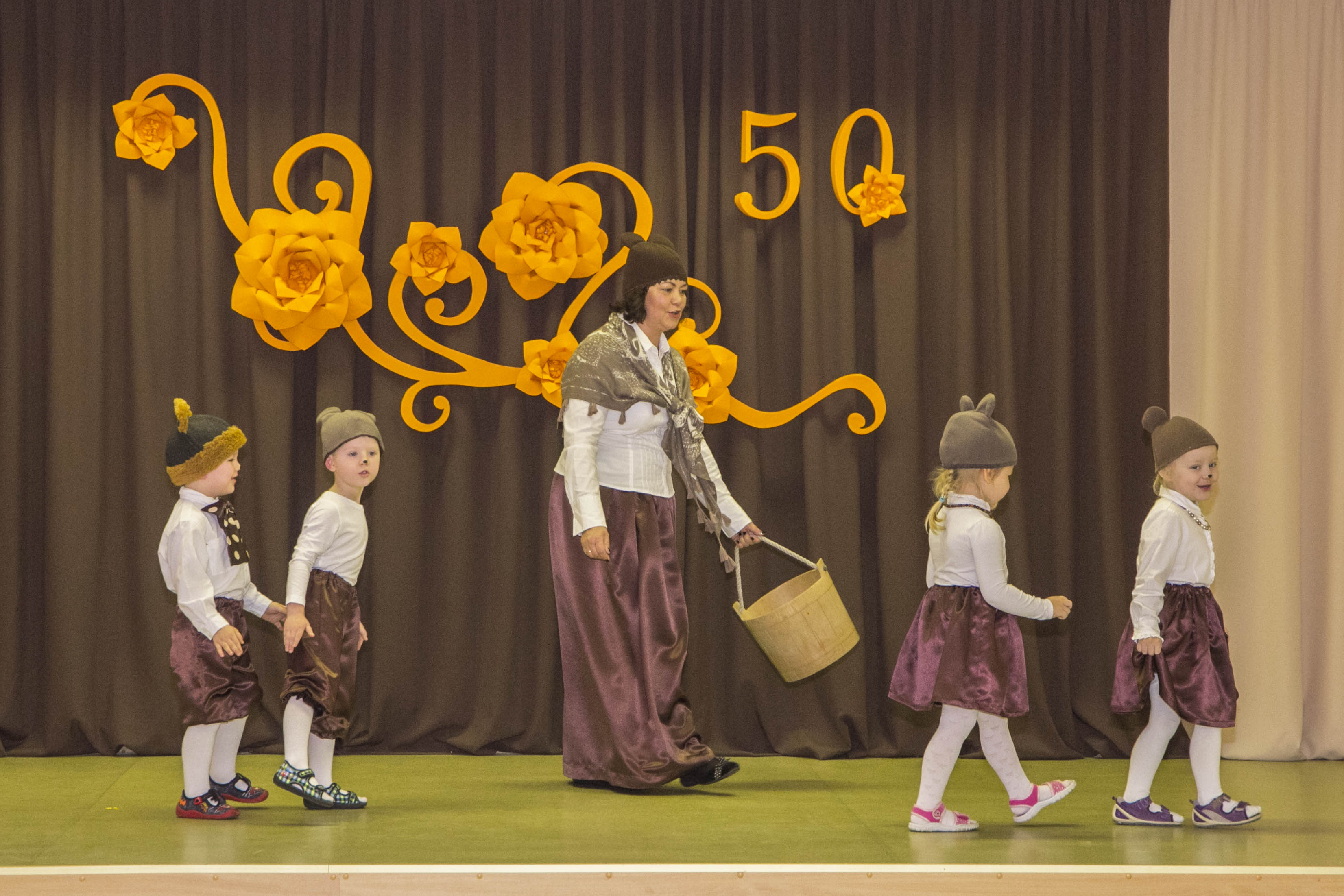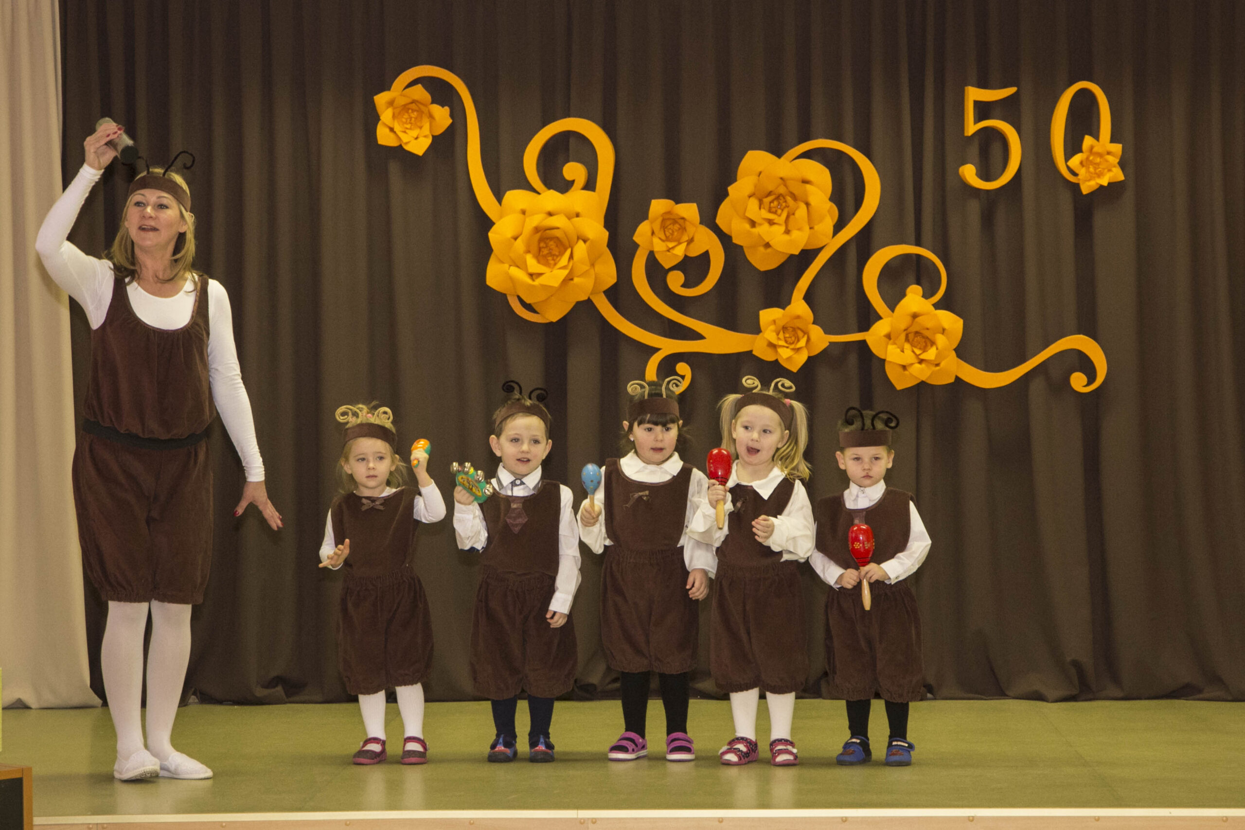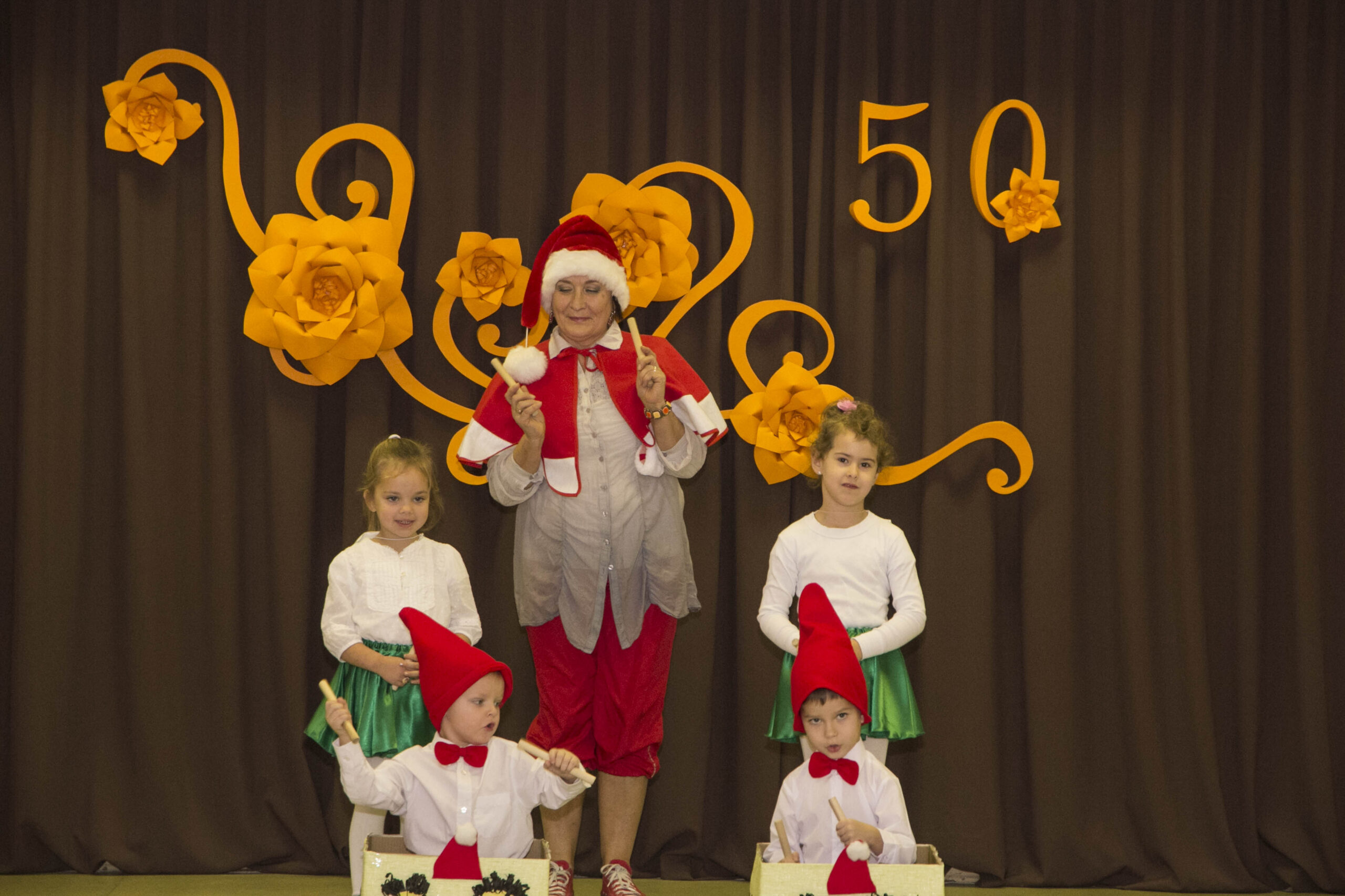 Dabartiniams darželio auklėtiniams – šventinėje scenoje tapusiems nykštukais, meškučiais, boružėlėmis, ančiukais ir kitais spalvingais veikėjais – dar nesuprantamas toks ilgas jų darželio gyvavimo laiko tarpas, jo metu vykusios permainos. Vaikai tiesiog linksmai krykštavo tarp juos šiltai globojančių auklėtojų ir mielai koncertavo susirinkusiems svečiams.