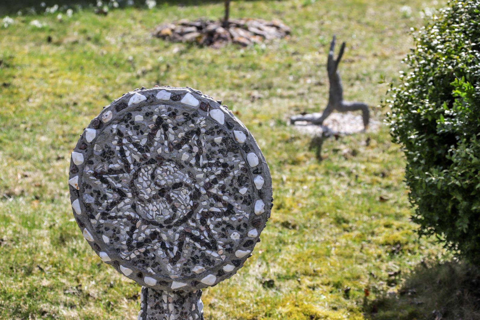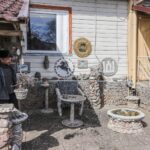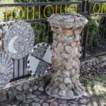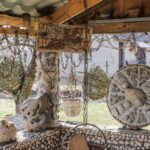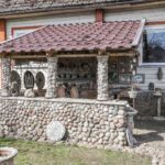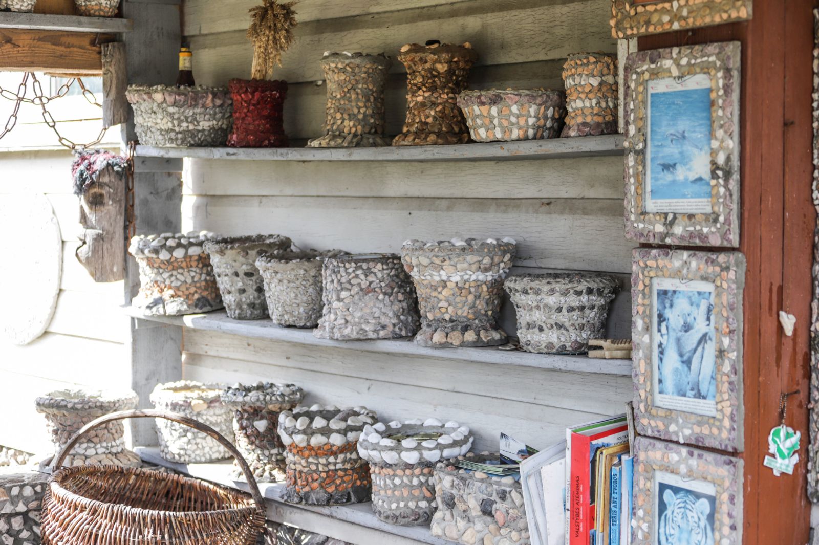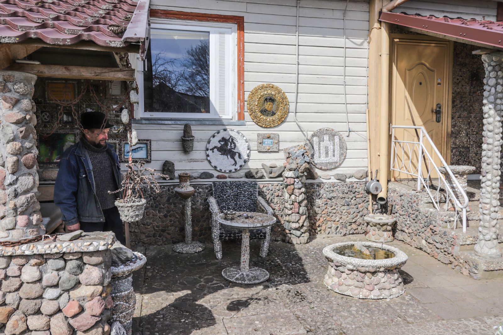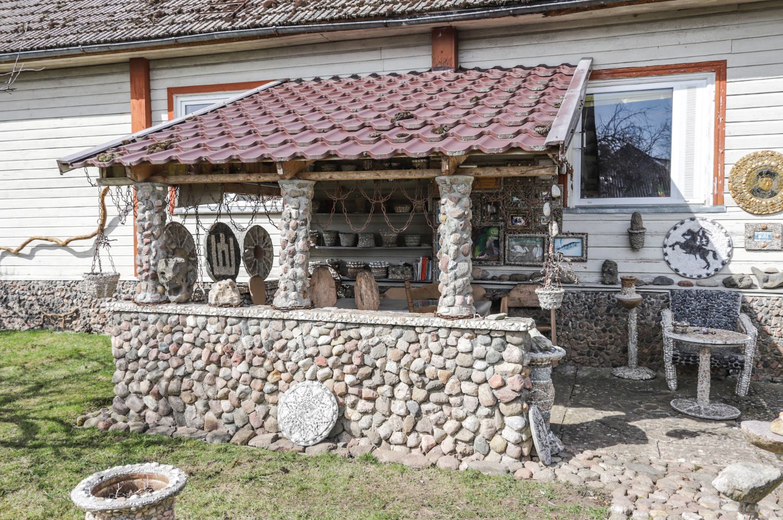 Čia pat akmeninė pavėsina, pilna akmeninių daiktų. Įvairių formų vazos, staliukai, nuotraukų rėmeliai ir kiti kūriniai ir namų viduje, žinoma, irgi iš akmens. Akmenukais dekoruoti baldai ir kiti daiktai.