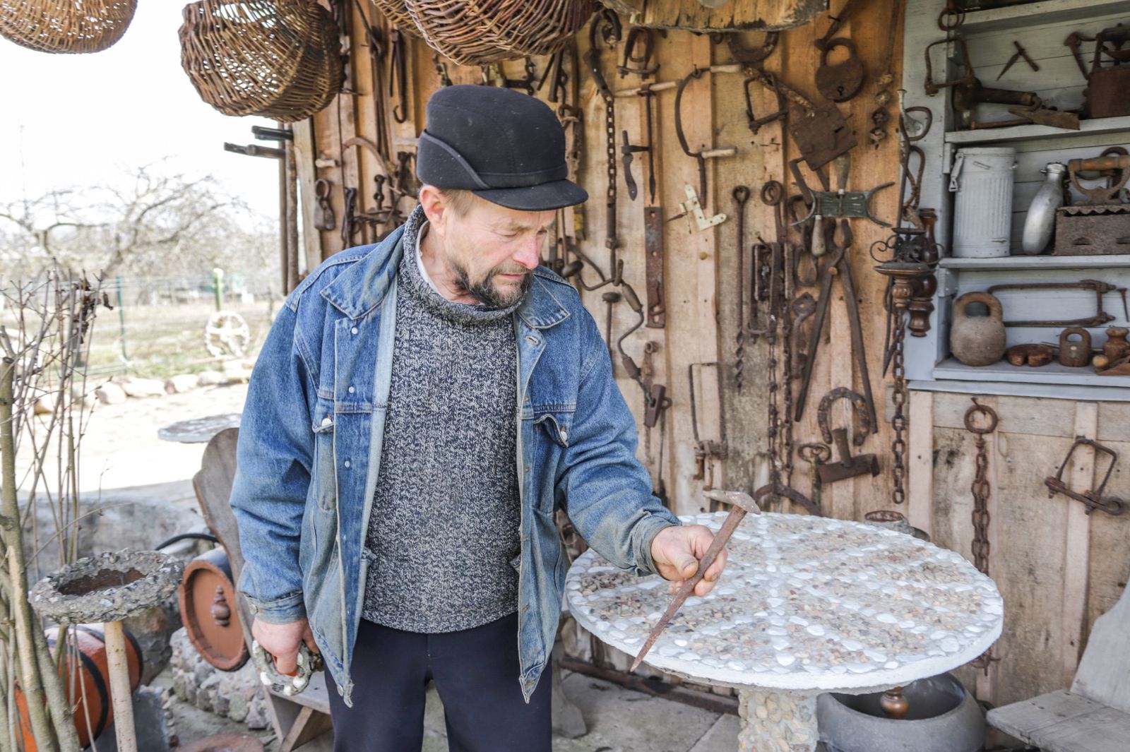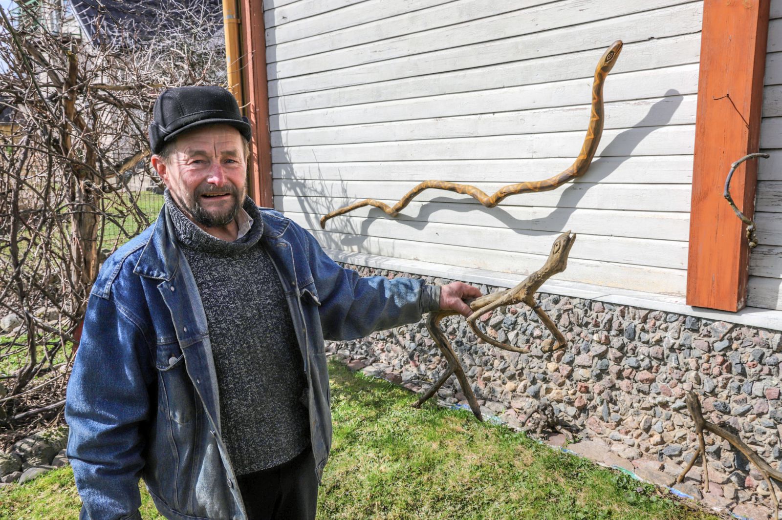 „Išėjau į pensiją, atsirado daug laisvo laiko – nenorėjau jo leisti prie alaus butelio, rankos pačios pradėjo ieškoti darbo“, – apie netikėtai prieš dešimtmetį atrastą kūrybos džiaugsmą pasakoja raguviškis.