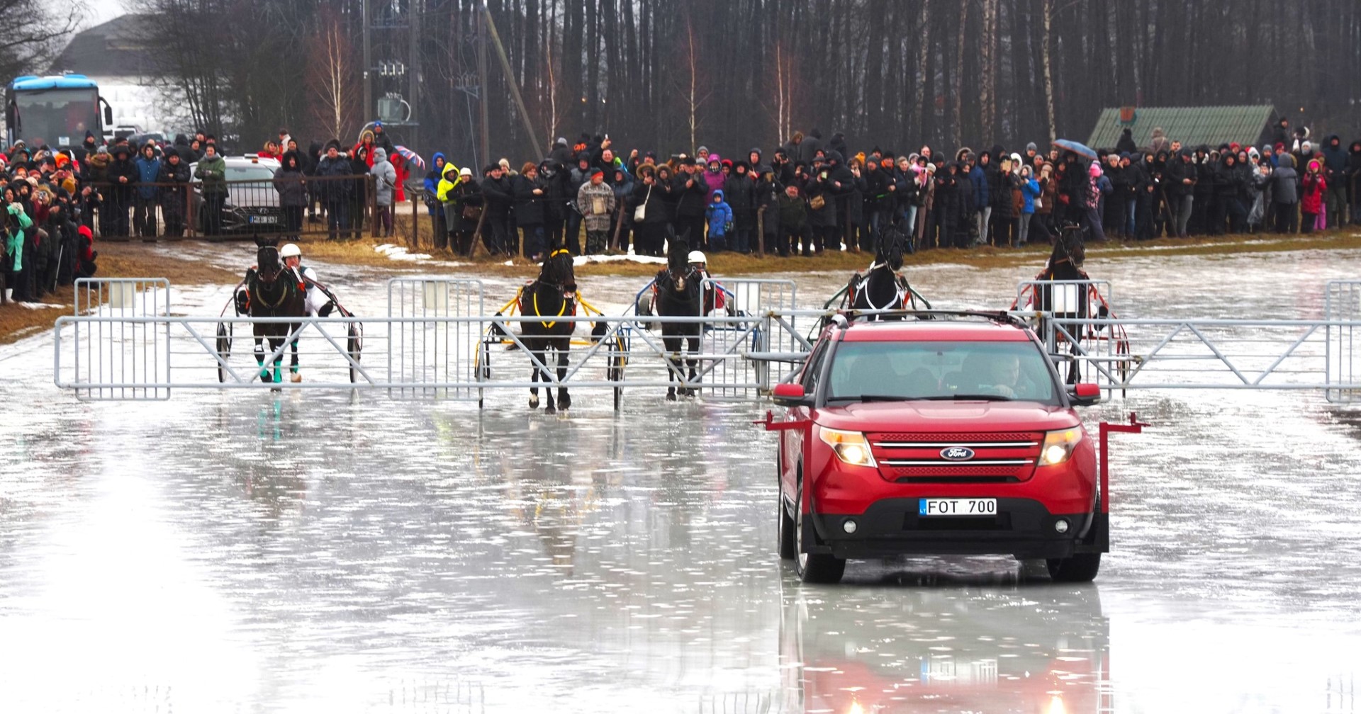 Lieti ledą šiųmetėms varžyboms imtasi jau sausio viduryje. Vanduo buvo semiamas iš Sartų ežero, vežamas į Dusetų hipodromą ir purškiamas ant tako. Ir taip kasdien, nuo ankstyvo ryto iki vėlaus vakaro.