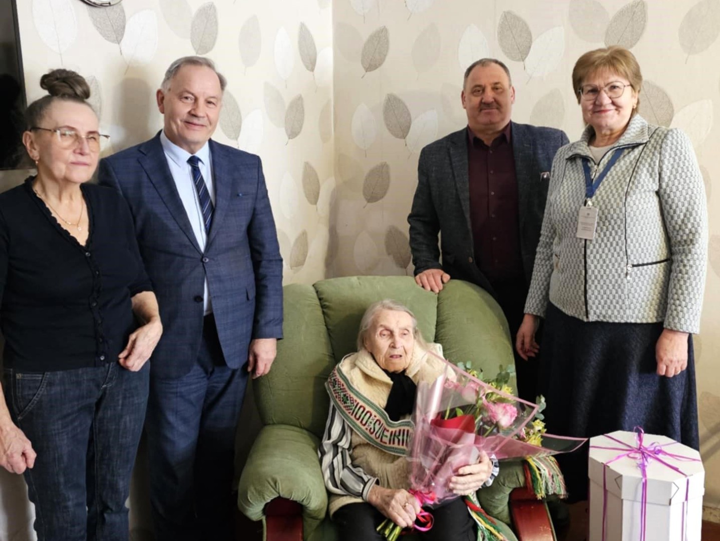 Šimto metų jubiliejų mininti Panevėžio rajono gyventoja Elena Zdanevičienė sulaukė rajono Savivaldybės sveikinimų.