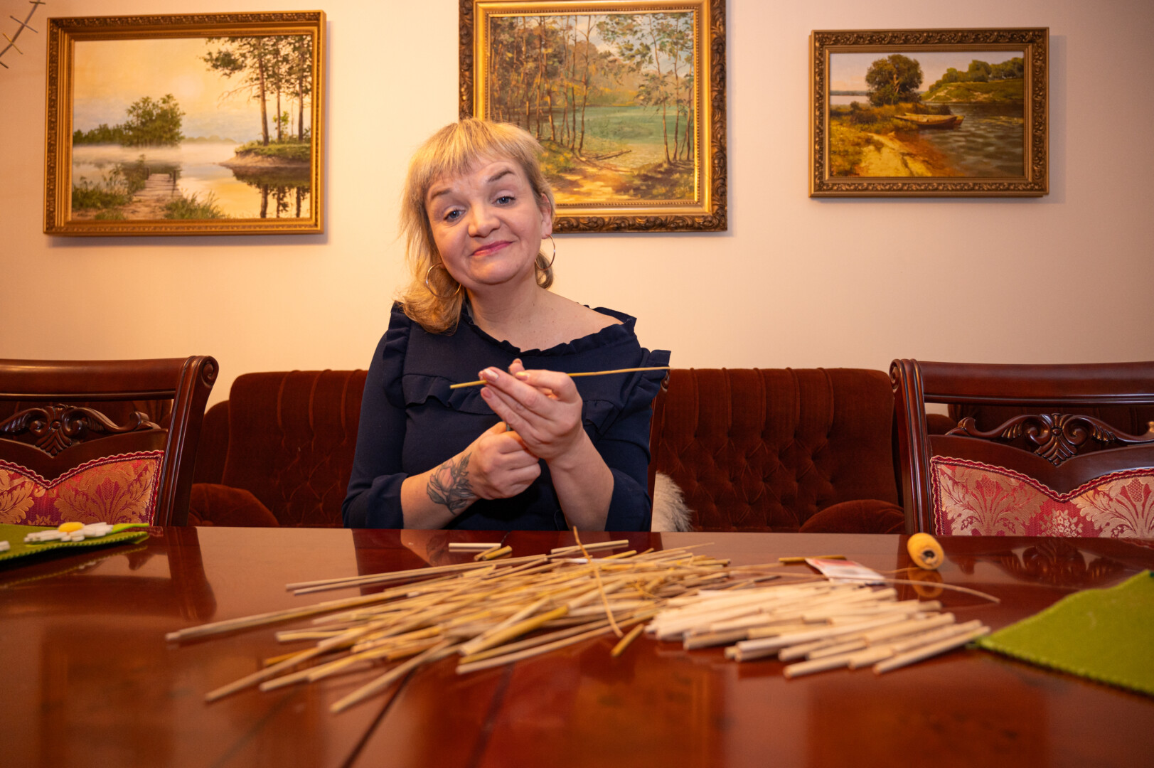 Panevėžietė tautodailininkė, įgudusi sodų rišėja Daiva Valentienė paprieštarauja.