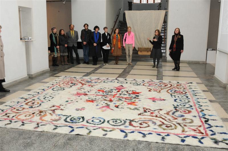 Veltinio mylėtojai Dailės galerijoje savo unikaliais darbais sukūrė išskirtinę atmosferą. Vos tik pravėrus galerijos duris norisi patogiai įsitaisyti vilnonėse sūpynėse, atsigulti ant kruopščiai pagamintų pagalvių. Salės viduryje ištiestas minkštas kilimas tarsi prašo nusiauti batus ir prisiliesti prie jo basomis kojomis.