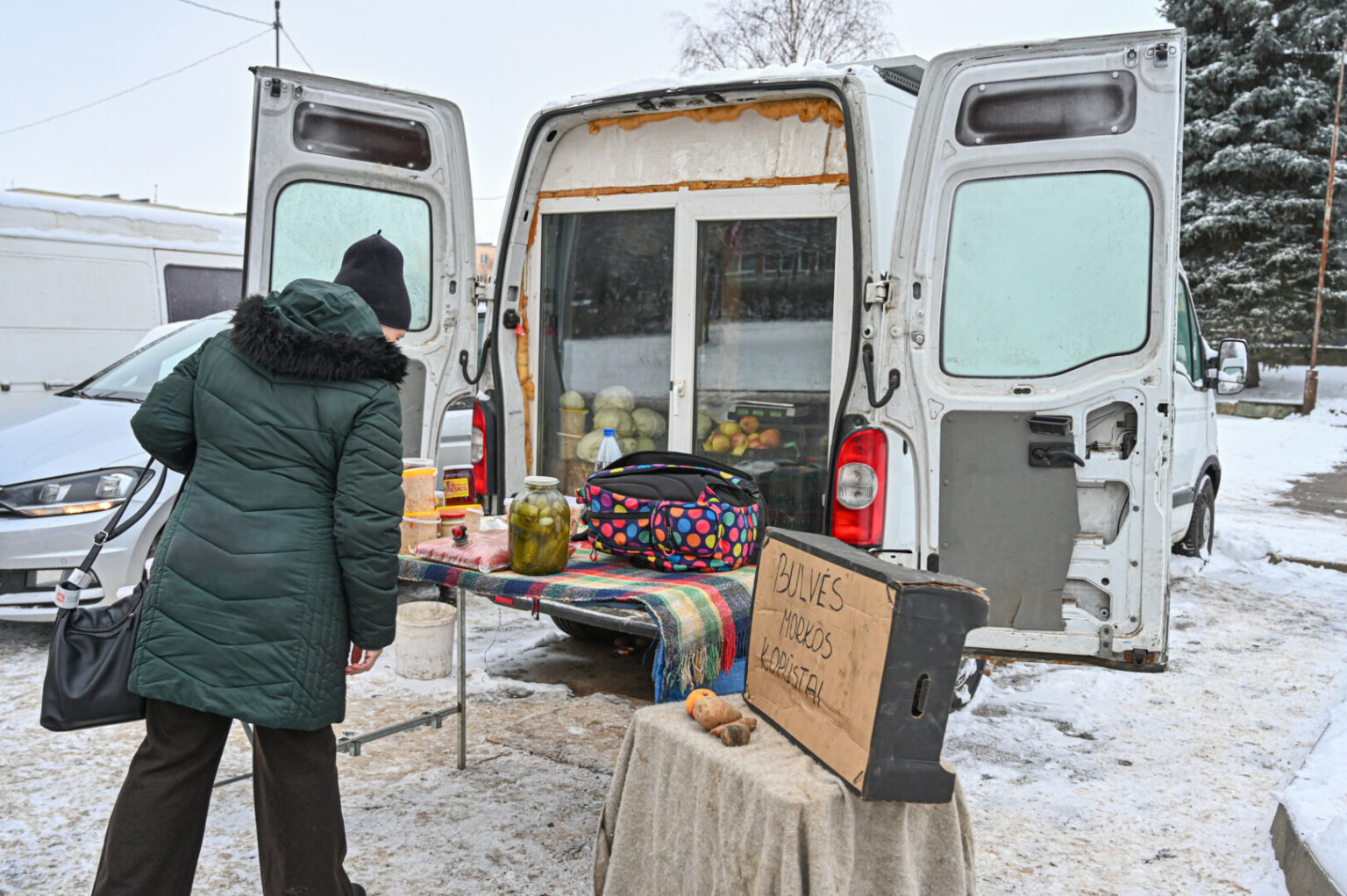 K. Štarolienės ūkyje išaugintomis bulvėmis, morkomis, šviežiais ir raugintais česnakais bei kopūstais prekiaujanti Lina taip pat apgailestavo, kad su šiais produktais nebegalės grįžti į automobilių stovėjimo aikštelę priešais „Žarą“.