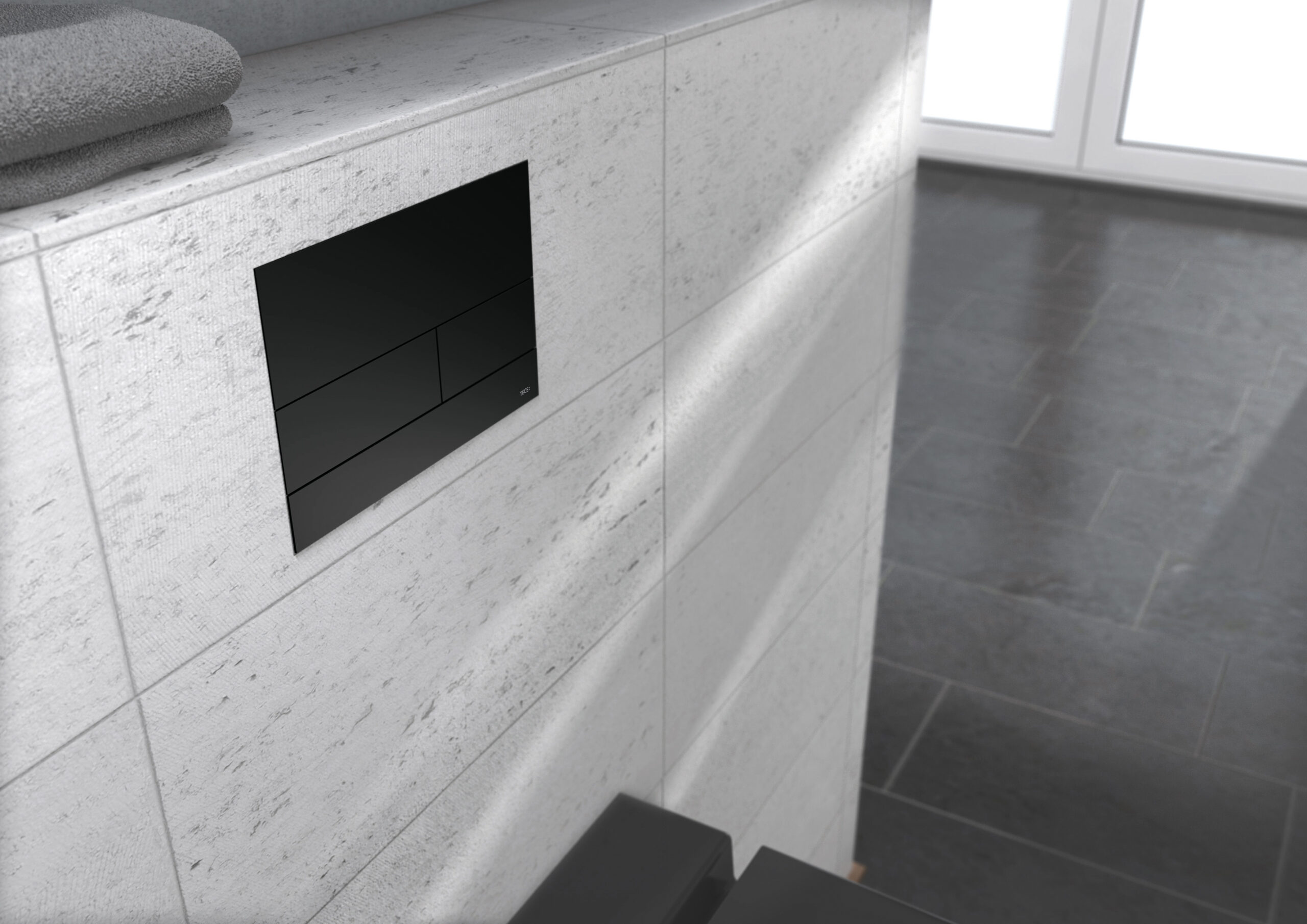 TECE vandens nuleidimo mygtukas, montuojamas sienoje tuomet, kai unitazas kabinamas ant rėmo, paslėpto po tinku ar gipso kartono plokštėmis. Įprastai statybose, šiame inžinerinės įrangos montavimo procese dalyvauja keli specialistai – santechnikas, tinkuotojas ar sienų meistras bei plytelių klojėjas.