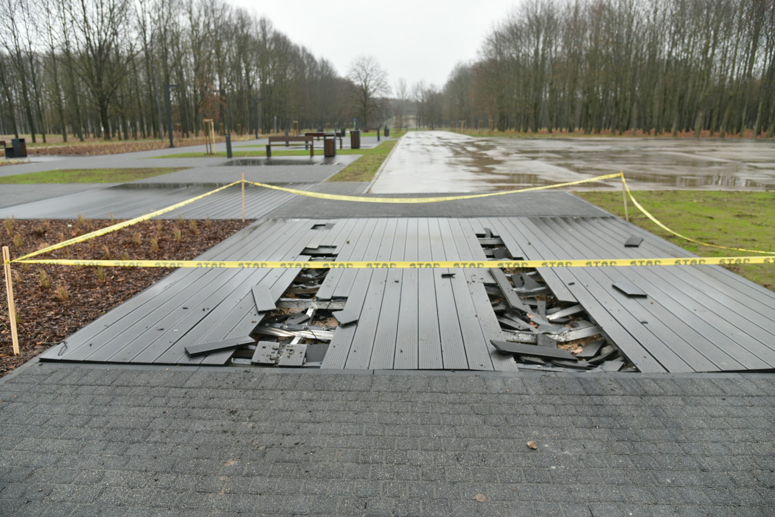 „Ten yra pilkų trinkelių danga, o tarp jų – medinės pilkos lentos. Kadangi buvo šlapia, pilkuma susiliejo, vairuotojas nepastebėjo lentelių ir apsisukdamas ant jų užvažiavo. Šito buvo galima išvengti, tikrai galėjo truputį kitaip pavažiuoti, ten pakako vietos apsisukti“, – aiškino J. Vingilytė.