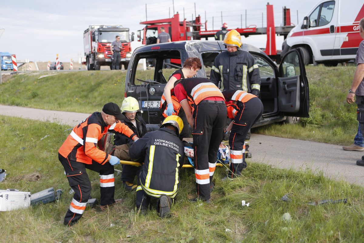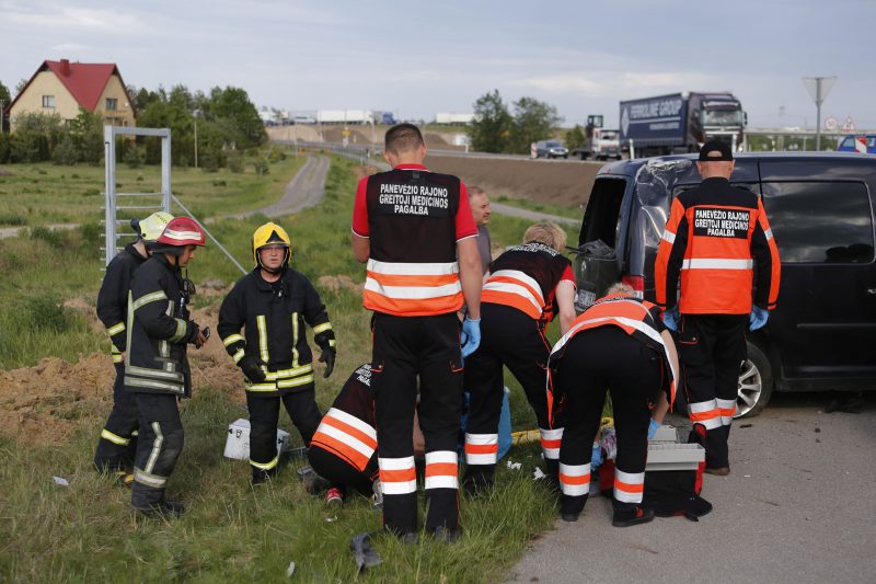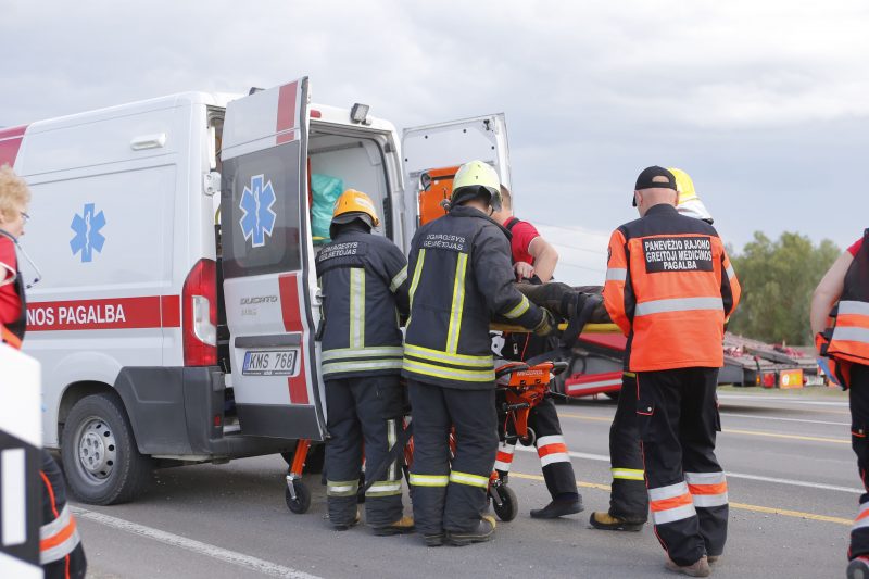 Automobilvežio „Volvo“ su priekaba 38-erių vairuotojas iš Ukrainos, sukdamas į kairę, nepraleido jam priešais pagrindiniu keliu atvažiuojančio „Volkswagen Caddy“ automobilio, vairuojamo 65-erių panevėžiečio, ir su juo susidūrė. Lengvasis automobilis nuo smūgio nusviestas į griovį apvirto. Per avariją nukentėjo „VW Caddy“ vairuotojas. Jis iš avarijos vietos greitosios pagalbos automobiliu išvežtas į Respublikinę Panevėžio ligoninę. Nukentėjusiajam nustatytos kairiojo žasto daugybinės pjautinės žaizdos, kairiojo dilbio nubrozdinimas, kairės ausies kaušelio žaizda. Po apžiūros vyras išleistas į gydytis į namus.