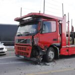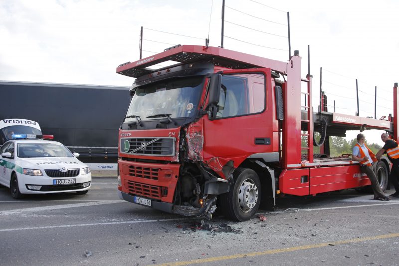 Remontuojamame Panevėžio aplinkkelyje susidūrus automobilvežiui su lengvuoju automobiliu, sužalotas žmogus.