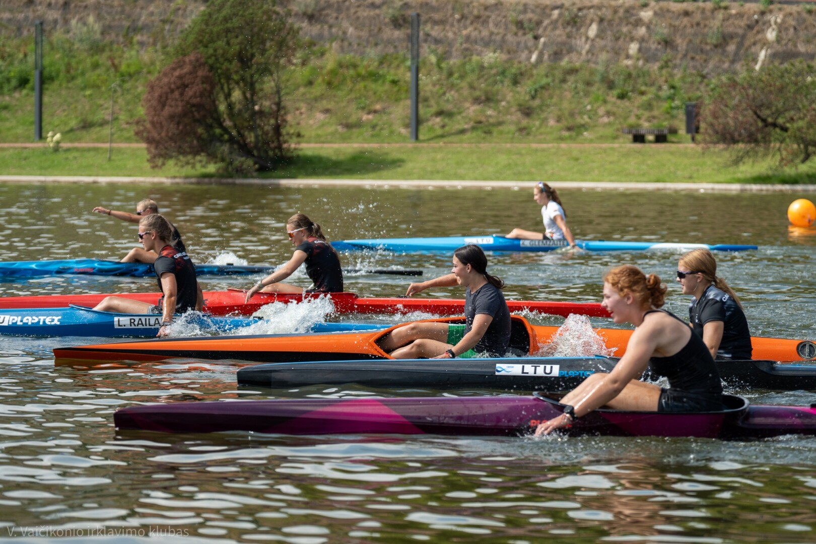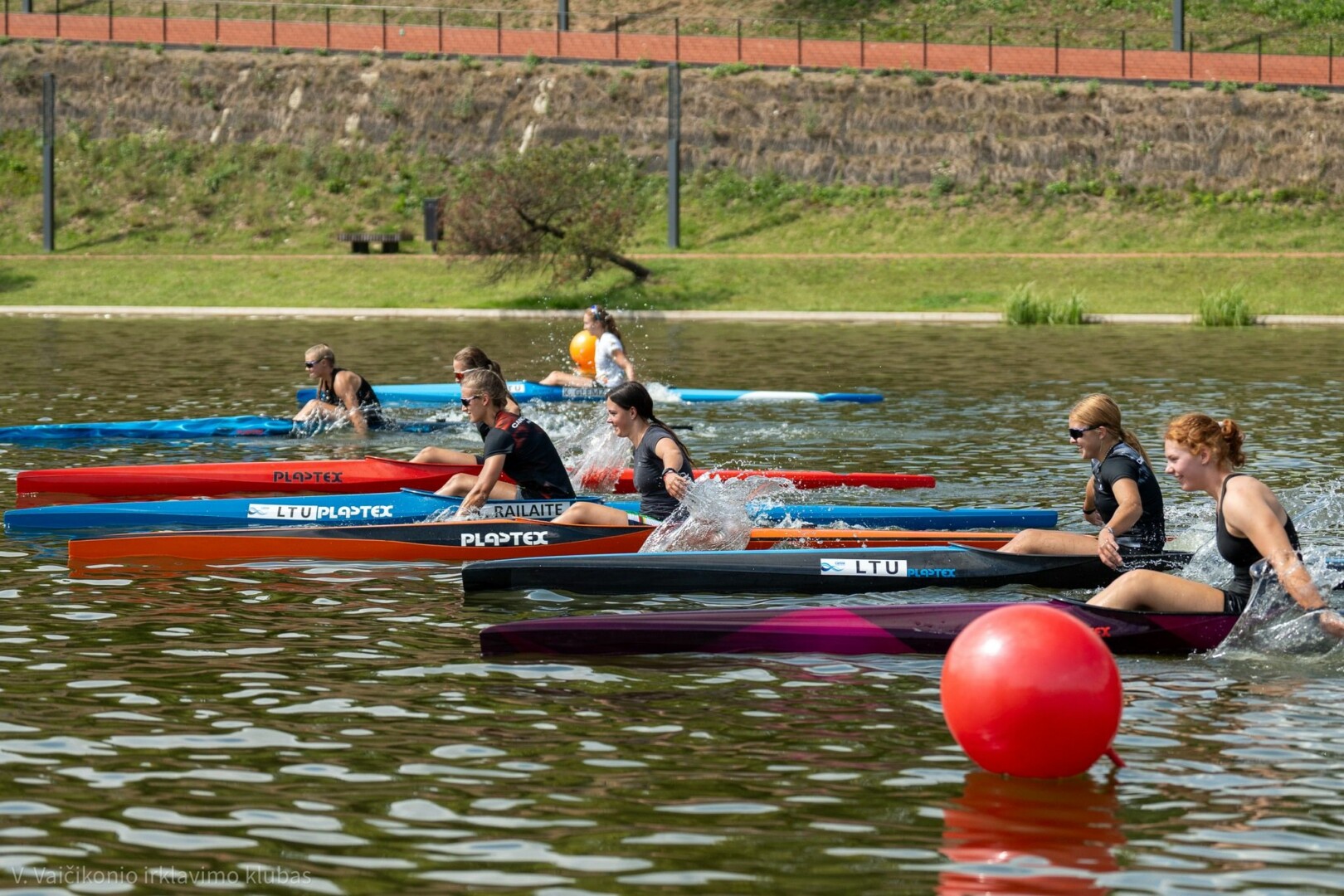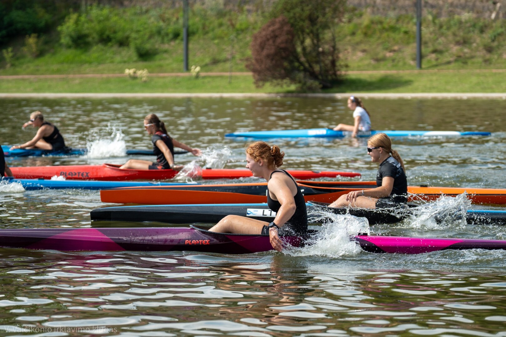 Baidarininkai iš paskutiniųjų varžėsi vandenį skrosdami rankomis.