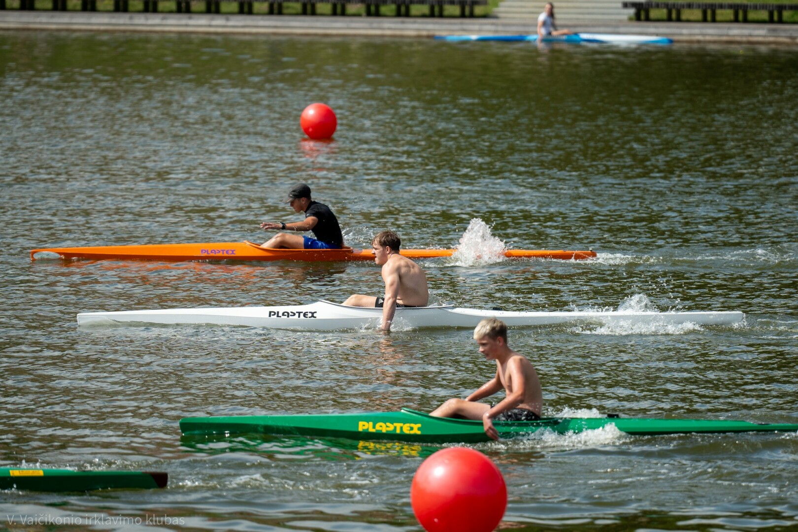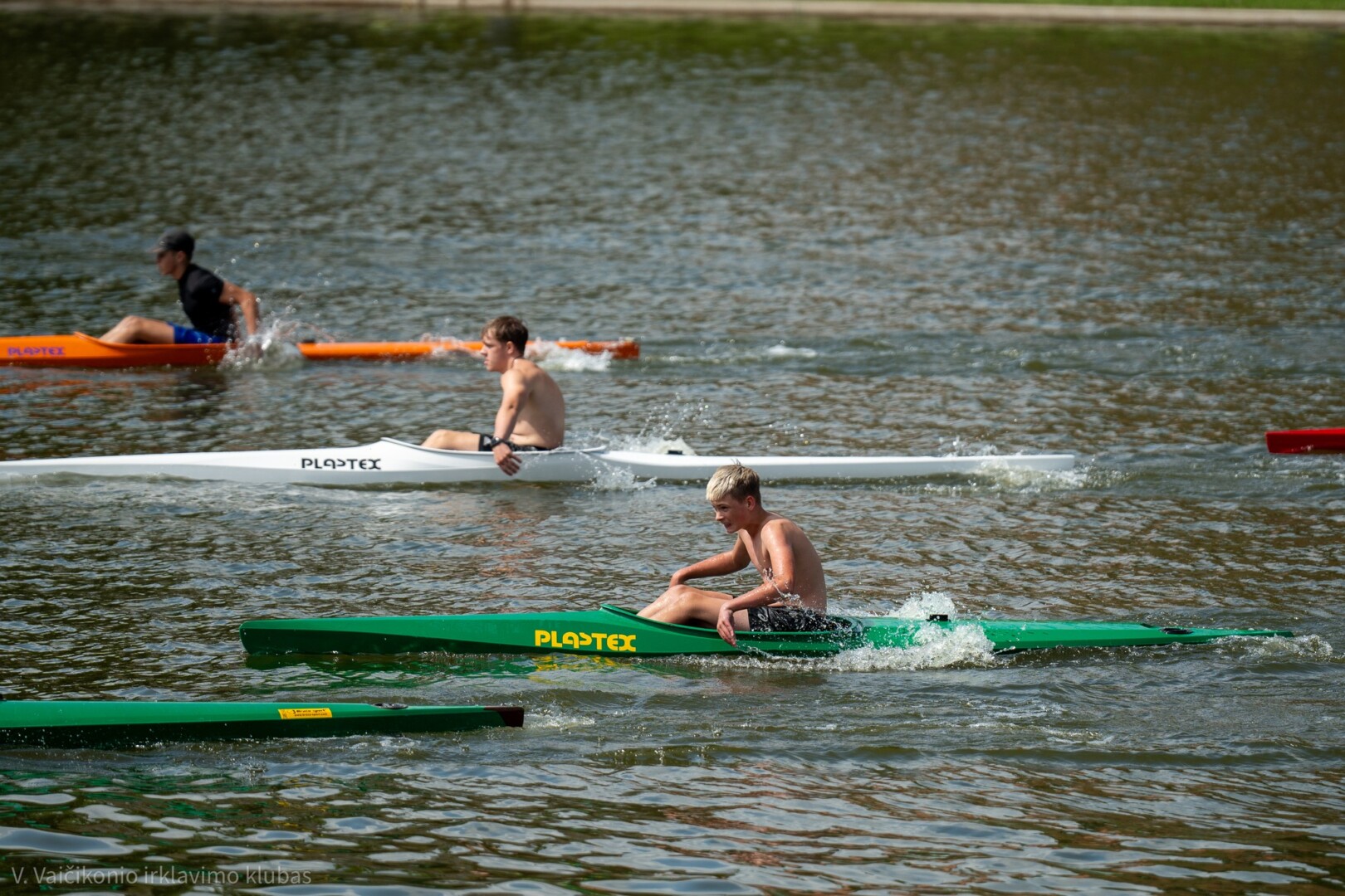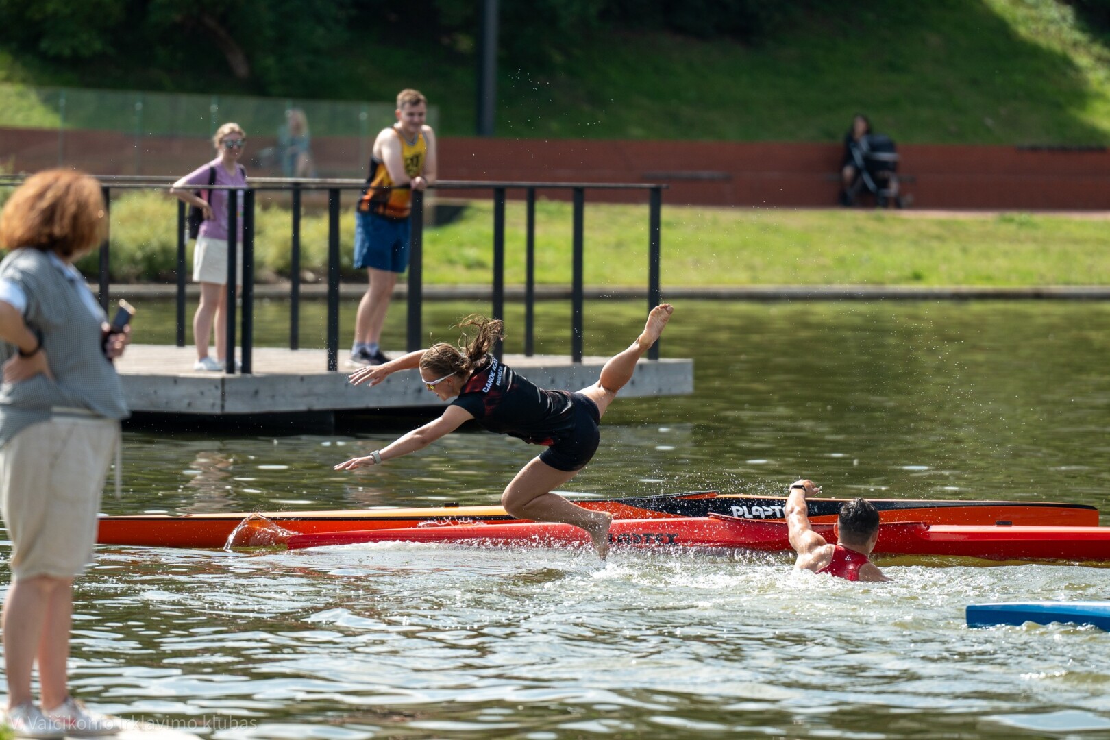 Baidarininkai iš paskutiniųjų varžėsi vandenį skrosdami rankomis.