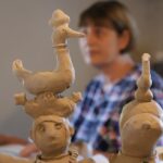 Šiųmečio keramikų simpoziumo dalyvių iš molio sukurtos įvairios, labai skirtingos pasakos dar džiovinamos, paskui jos bus degamos krosnyje, o tada galės stoti prieš žiūrovų akis.