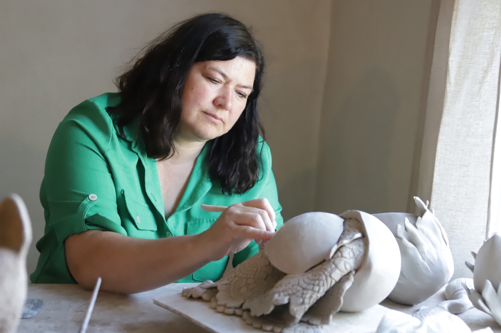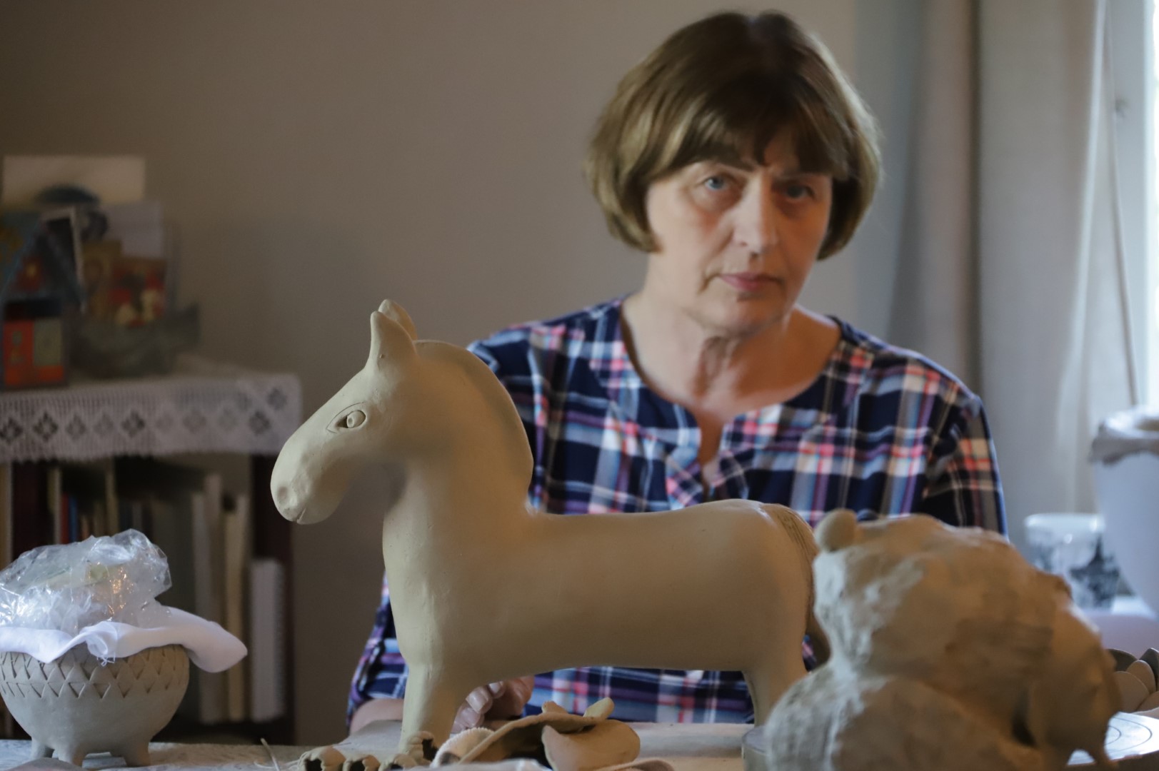 Keramikų sukurtos pasakos dar džiovinamos, paskui jos bus degamos krosnyje ir tik tada galės stoti prieš žiūrovų akis.