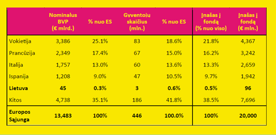 Kokie galėtų būti įnašai valstybių į Europos talentų stabilumo mechanizmą, siūlome aptarti pateikiamoje lentelėje: