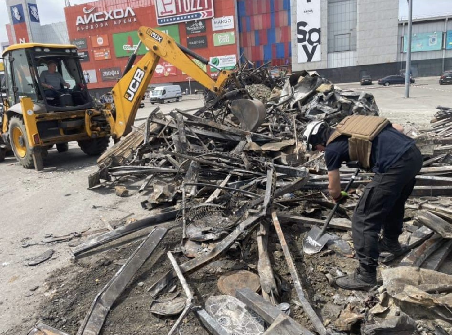Ukraina gedi Charkivo prekybos centre po Rusijos aviacijos smūgių sudegusių žmonių. Žuvusiųjų tapatybes bandoma nustatyti rankomis perkasant pelenus ir ieškant bent menkiausių kūno fragmentų.