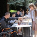 Su čempione sužaisti šachmatais Panevėžio teatro „Menas“ jaukiame kiemelyje galėjo visi norintieji.