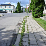 Nuo Ramygalos gatvės Algirdo gatve iki J. Miltinio memorialinio buto žingsniavusi moteris pasibaisėjo ne senomis šaligatvio plytelėmis, bet tarp jų gausiai vešančia žole.