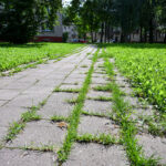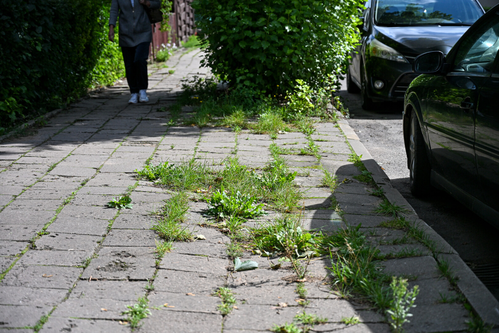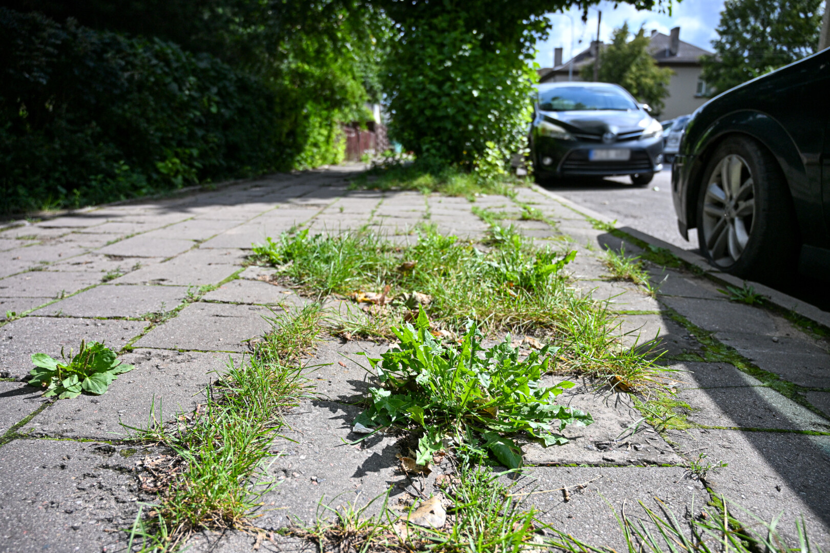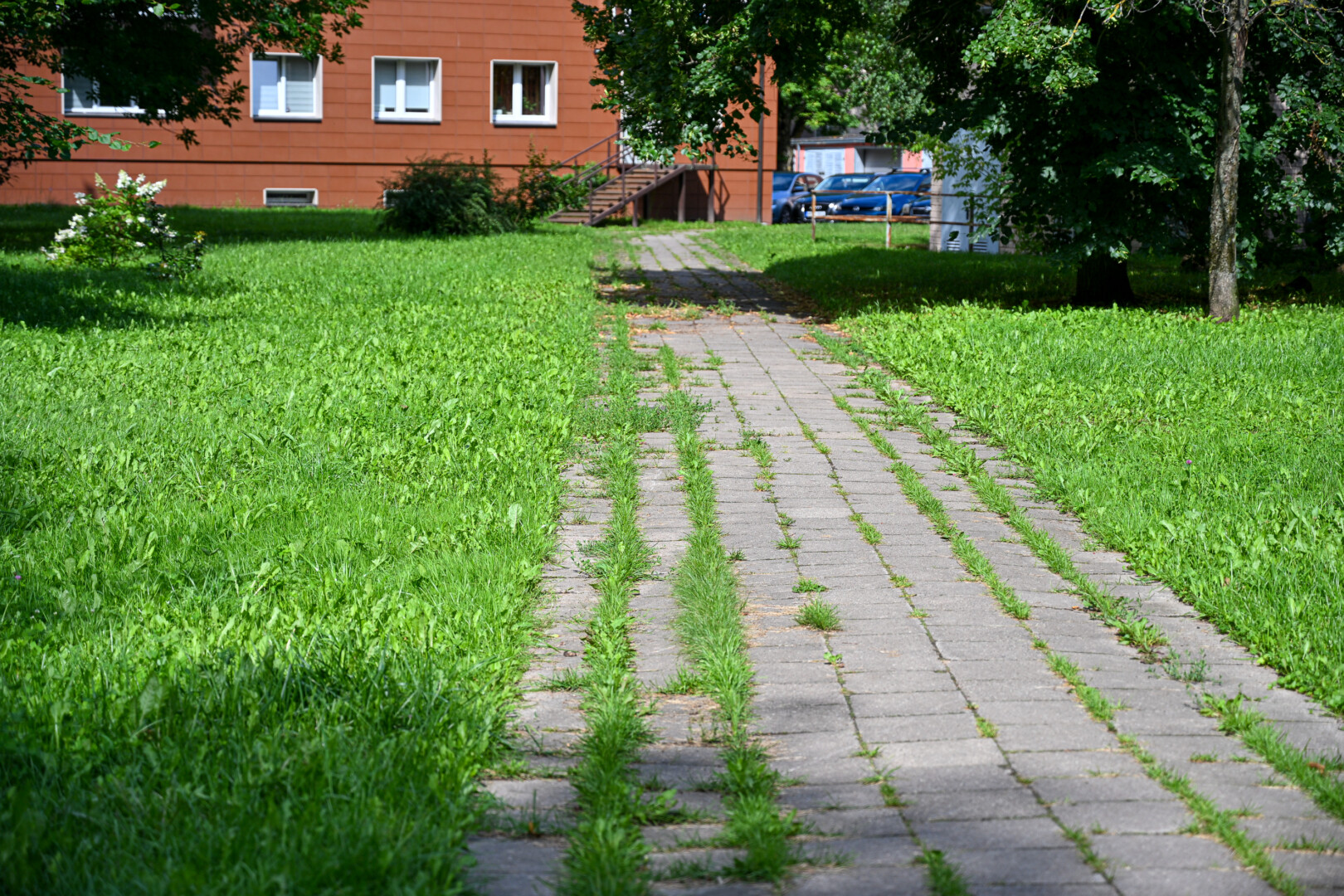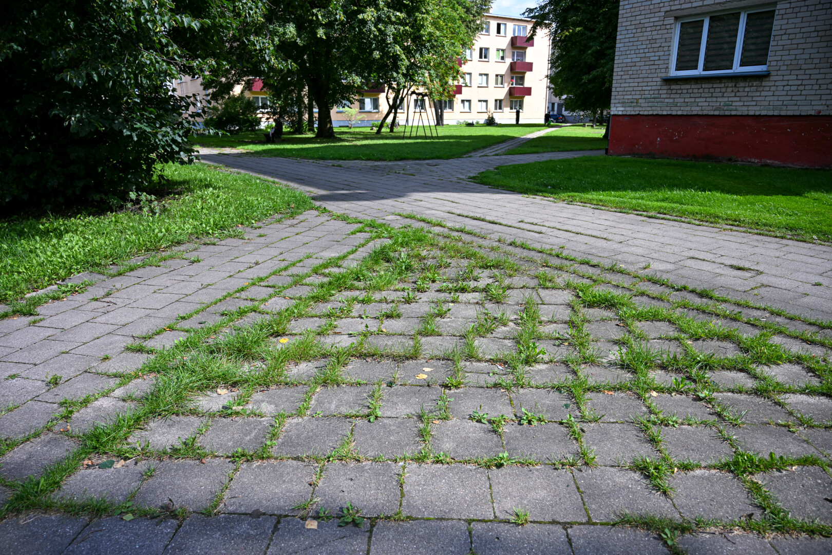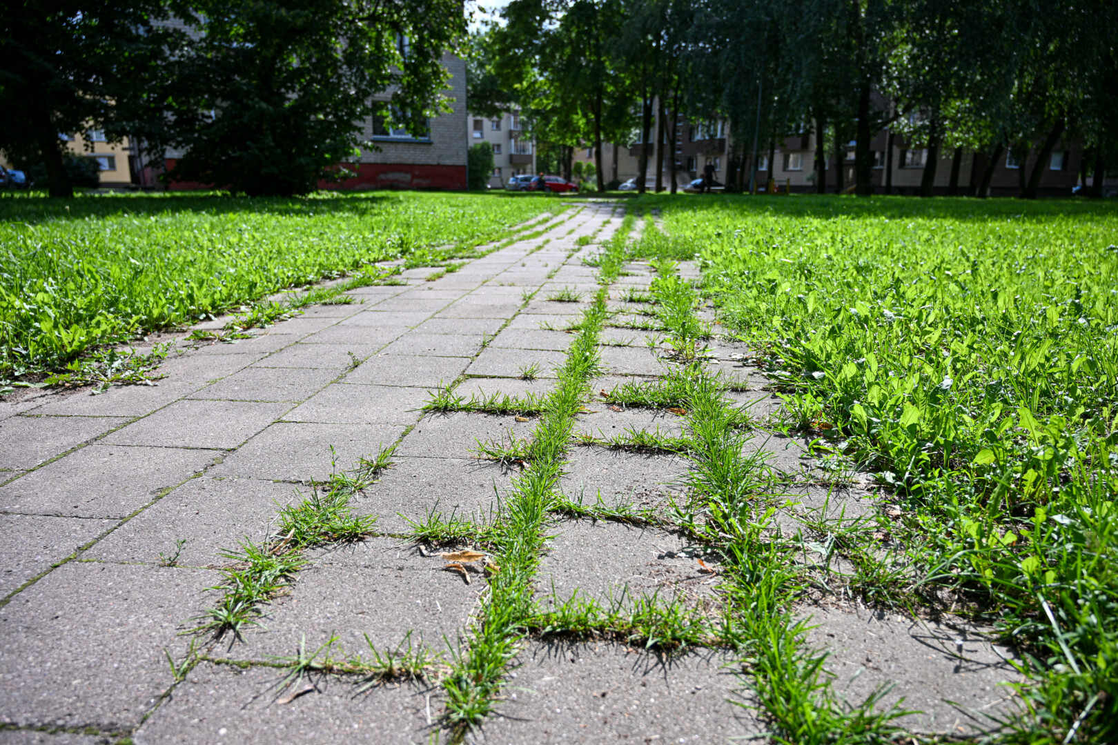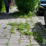Jo manymu, daugelyje miesto vietų, kur tarp plytelių želia žolė, yra kažkas negerai – pačios plytelės patrupėję, išsiklaipę, todėl į tarpus prikrenta sėklų.