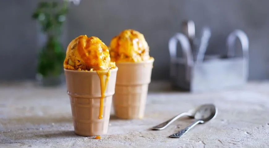 Morkų ledai su riešutais, karamele ir sausainiais
