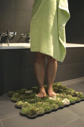 Dizainerė Nguyen La Chanh sumanė šiuos pojūčius perkelti į namų aplinką, todėl sukūrė samanų kilimėlį vonios kambariui. Šveicarijoje dirbančios dizainerės sukurta konstrukcija pagaminta iš tam tikros putų medžiagos (plastazote) ir apželdinta tilandsijomis, Islandinėmis kerpėmis ir miškinėmis samanomis. Samanoms reikia drėgmės (pakanka tos, kuri susikaupia po dušo ar vonios procedūrų), todėl vonios patalpa tokiam kilimėliui – tobula vieta.