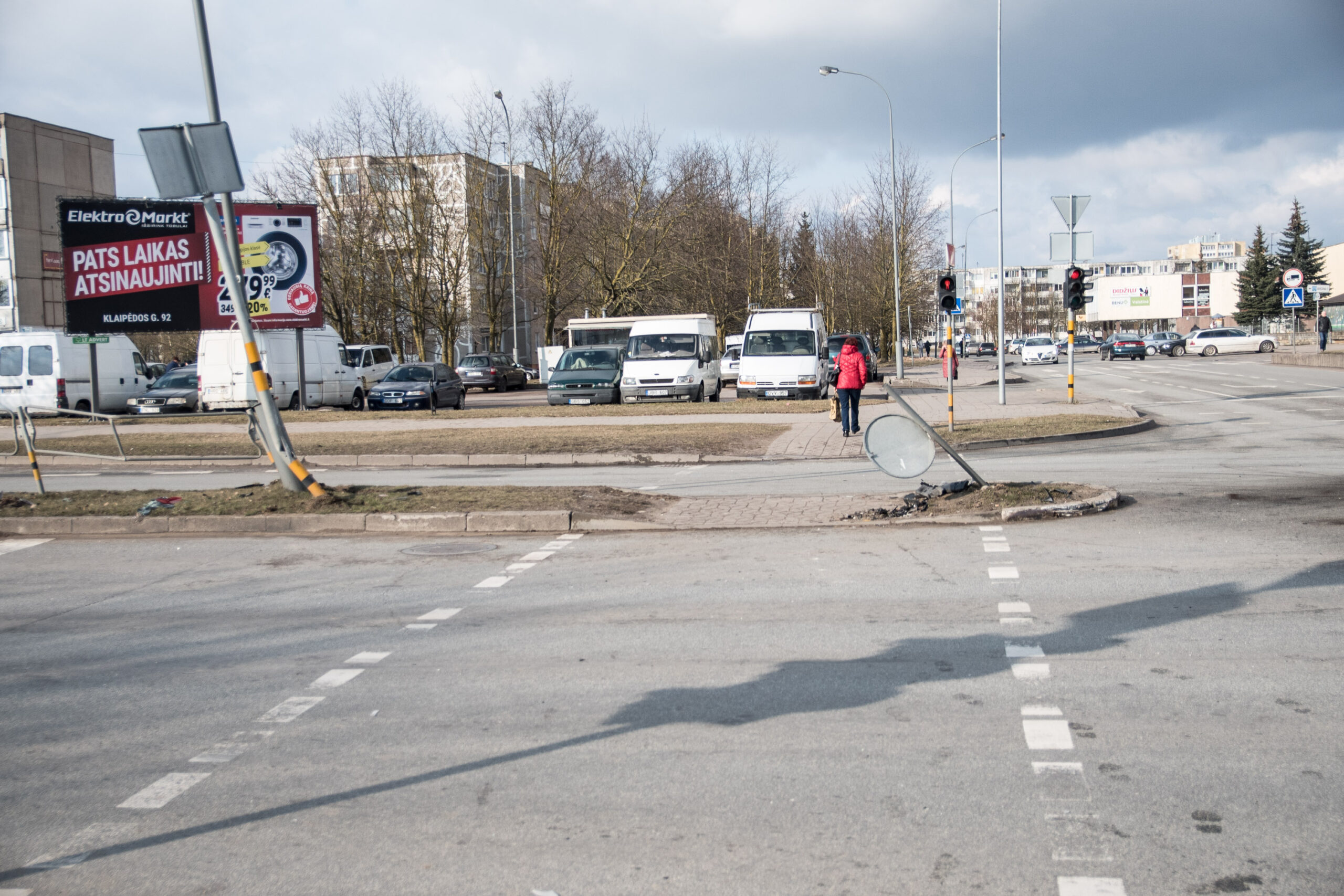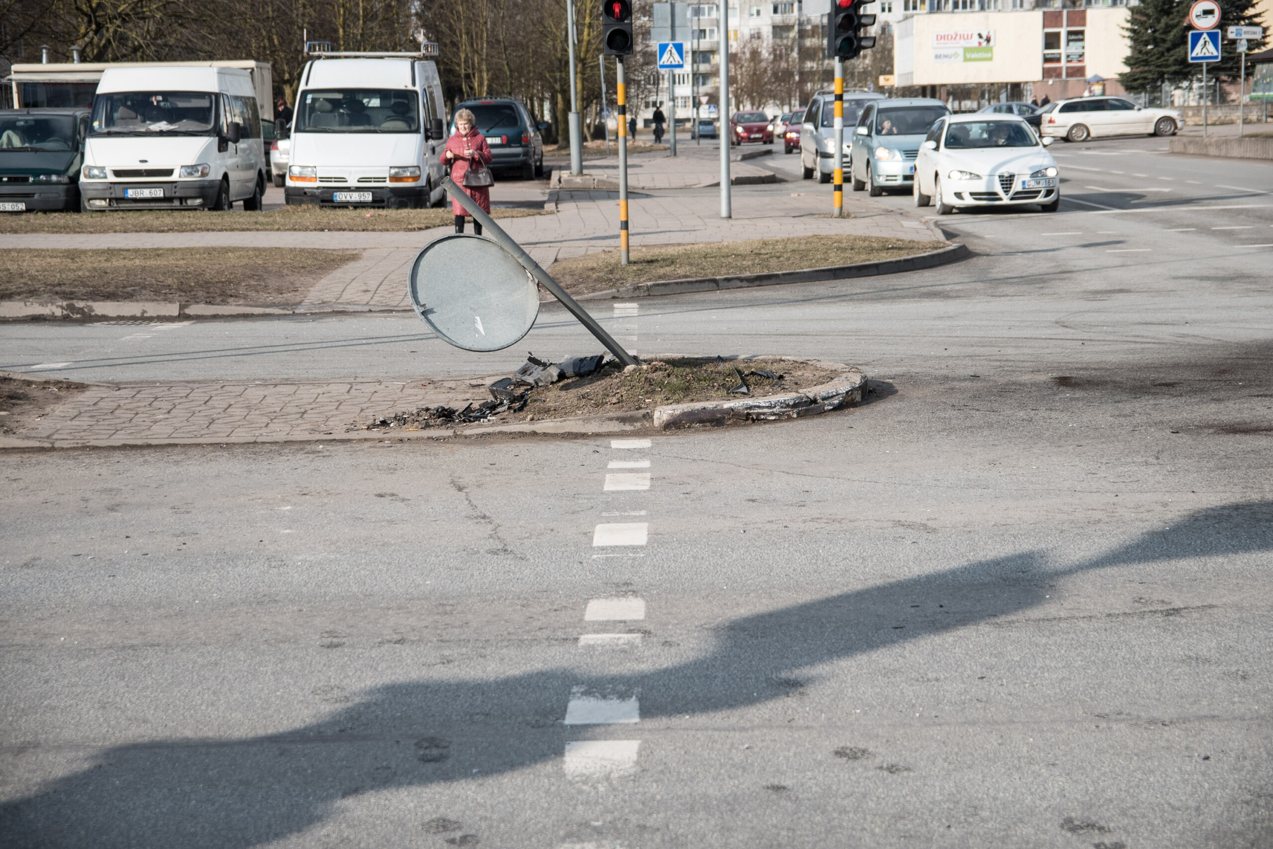 Sekmadienio popietę Klaipėdos ir Projektuotojų gatvių sankryžoje susidūrė du automobiliai. Eismo įvykio pasekmės galėjo būti gerokai liūdnesnės. Laimė, žmonių aukų išvengta – nukentėjo tik automobiliai ir kelio ženklai.