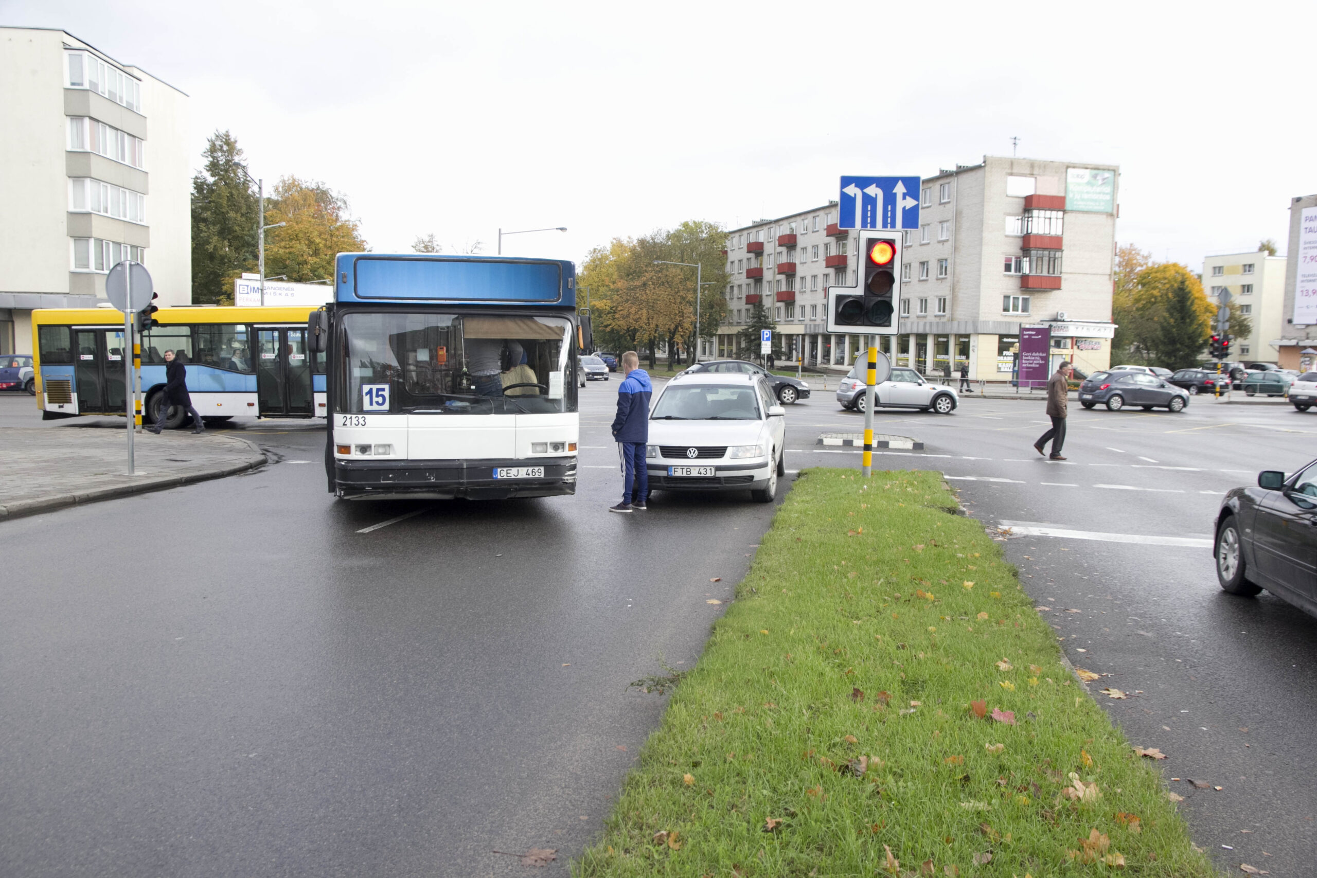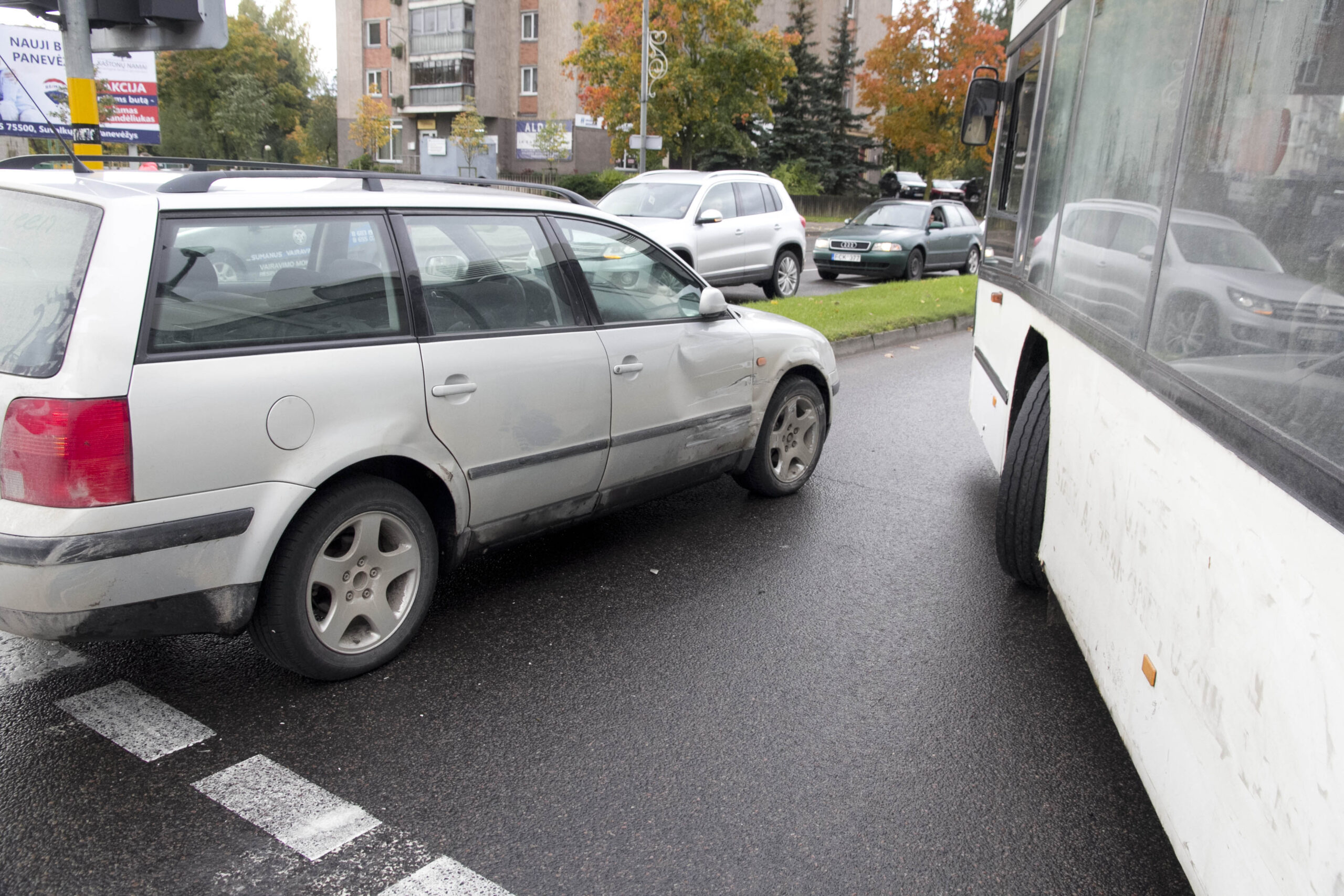 Trečiadienio popietę Panevėžio centrą paralyžiavo didžiulės automobilių spūstys, judrioje Vilniaus ir J. Basanavičius gatvių sankryžoje susidūrus maršrutiniam autobusui ir automobiliui „Volkswagen Passat“.