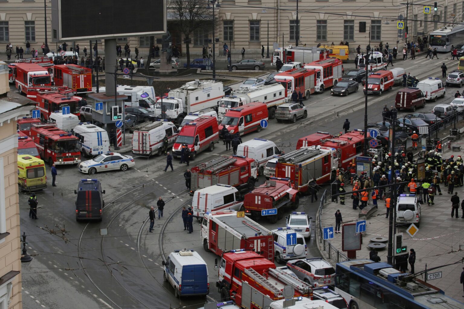 Skelbiama, kad uždarytos visos miesto metro stotys. Maskvos metro taip pat ėmėsi papildomų saugumo priemonių. Taip pat pranešama, kad pirmadienį visas antžeminis viešasis Peterburgo transportas bus nemokamas.