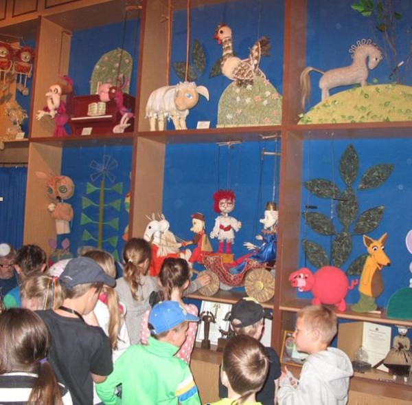 Šaunuoliukai susirinko mokyklos hole ir išvyko į Kauną. Pirmiausia aplankė Kauno lėlių teatro muziejų ir stebėjo teatralizuotą „Peliuko pasakų dirbtuvėlę“. Vaikai padėjo peliukui „pastatyti spektaklį“, taip per žaidimą jie buvo supažindinti su teatro užkulisiais ir spektaklio pastatymu.