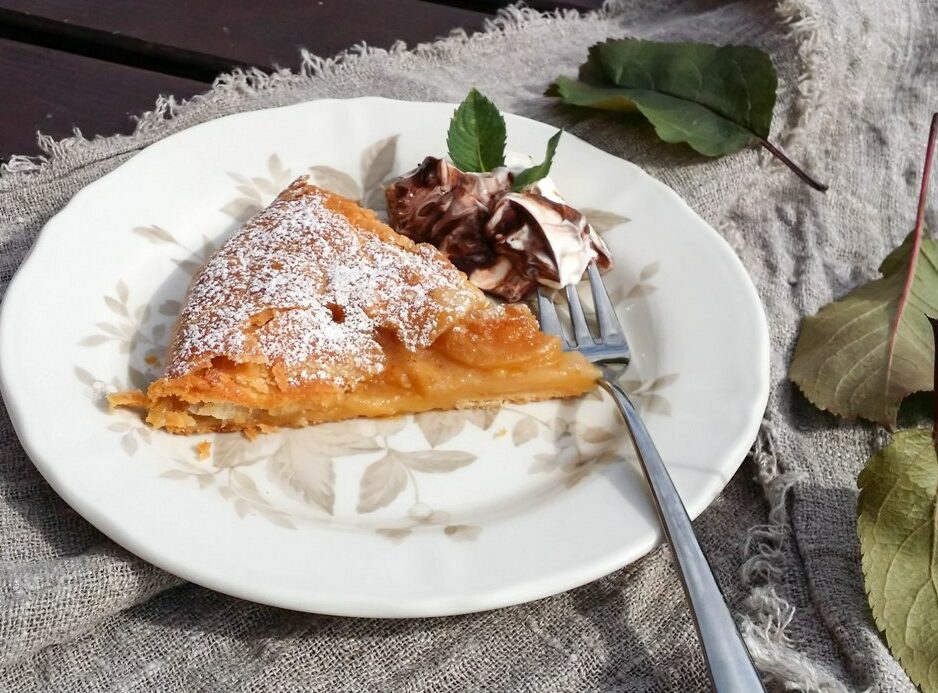 Taigi, jūsų dėmesiui ir įvertinimui – pyragas, kuriam nereikia kepimo formos, o kepamas galėtų būti ne tik su obuoliais ir kriaušėmis, bet ir su slyvomis.