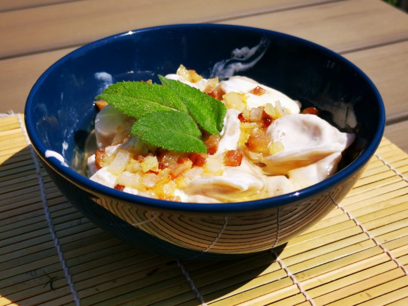 Tokius mėtomis kvepiančius, spirgučiais gausiai užpiltus virtinukus Remigijaus šeima skanauja būtinai užgerdama arbata – mėtų arba nestipria žaliąja.