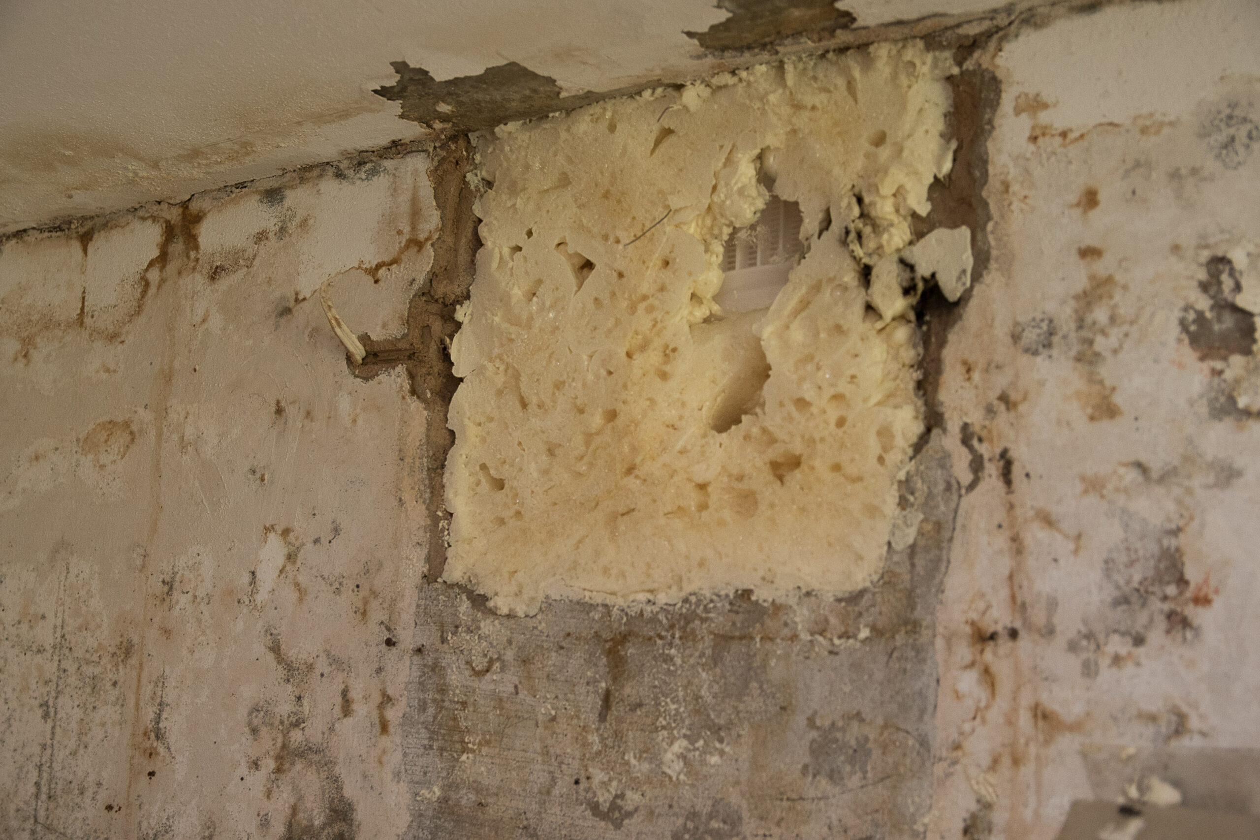 „Problema prasidėjo jau prieš dvejus metus, bet tada tik rasodavo vieta, kur eina vamzdžiai. Tąkart viršutinio aukšto gyventojai pareiškė, kad neleis griauti sienos, kad būtų galima prieiti prie vamzdžių, nes jie pasidarė remontą. Pagal projektą nebuvo galima aklinai uždengti vamzdžių, jie privalėjo įstatyti dureles. Taip savivaliauti negalima, bet tąkart viskas taip ir buvo palikta. O prieš tris savaites vanduo jau pradėjo veržtis pro sienas. Žmona pasakojo, kad pajuto svilėsių kvapą ir įvyko sprogimas – trumpasis jungimas“, – pasakojo J. Valuckis.